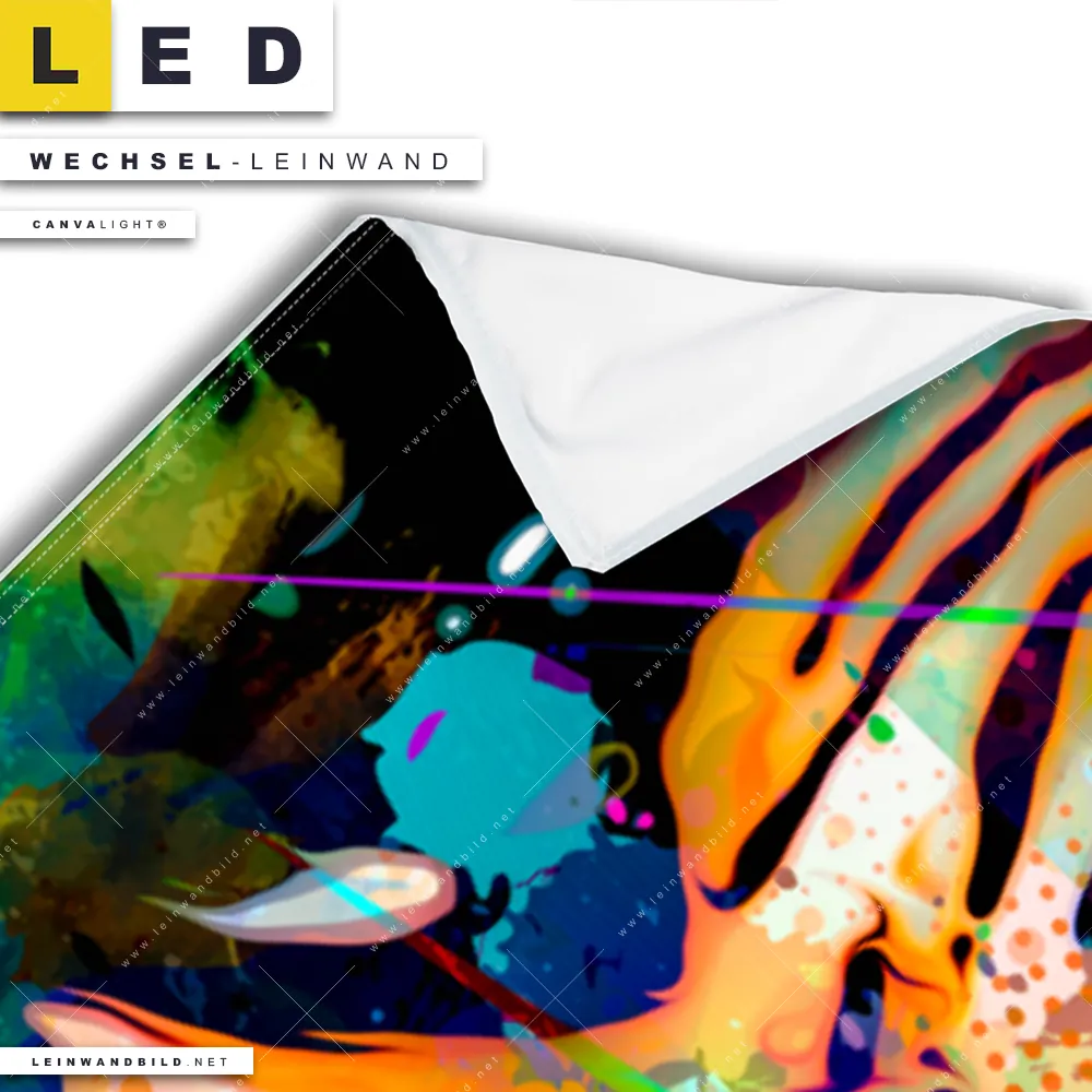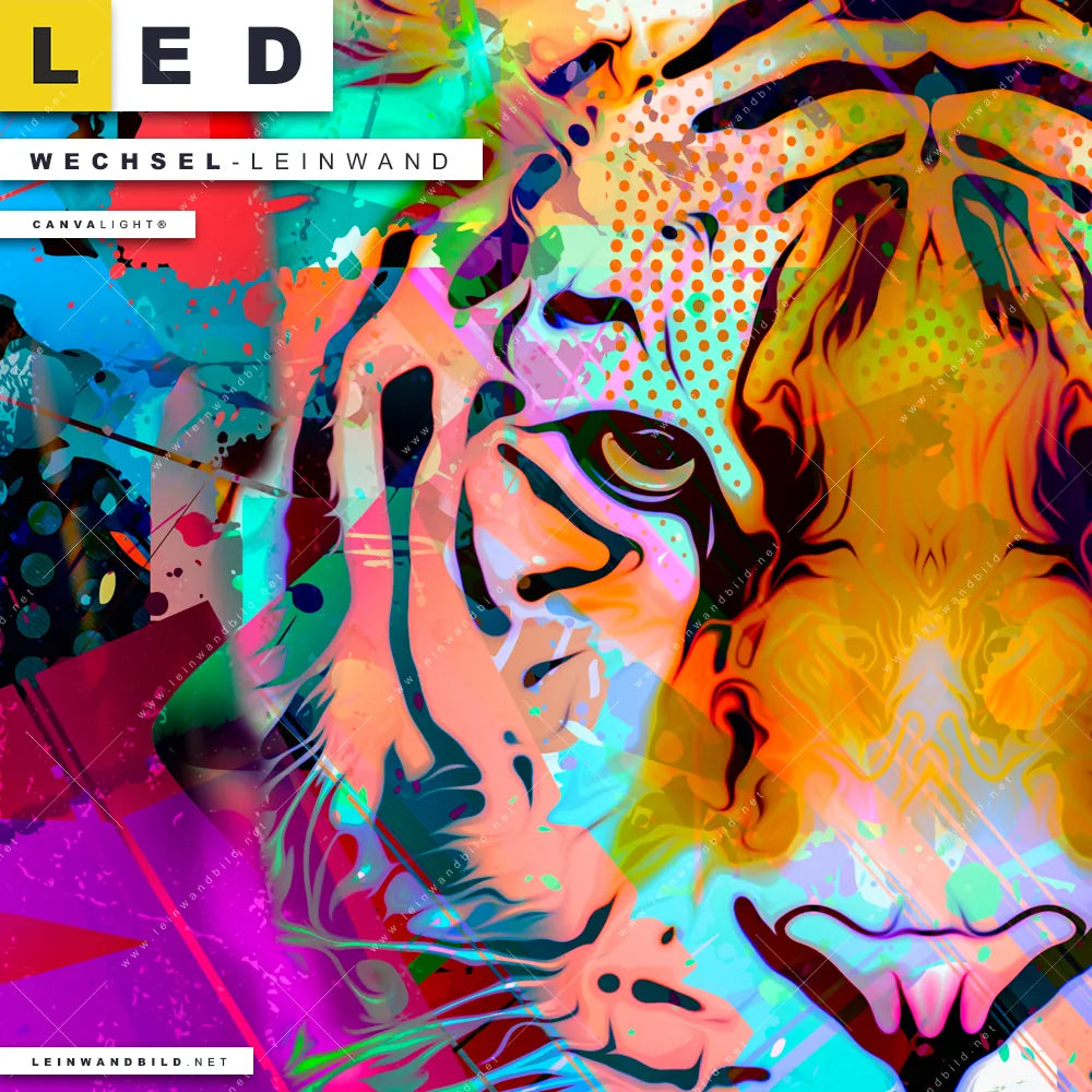 LED Wechsel-Leinwand Canvalight® TEX | Pop Art Tiger No. 2 | Schmal