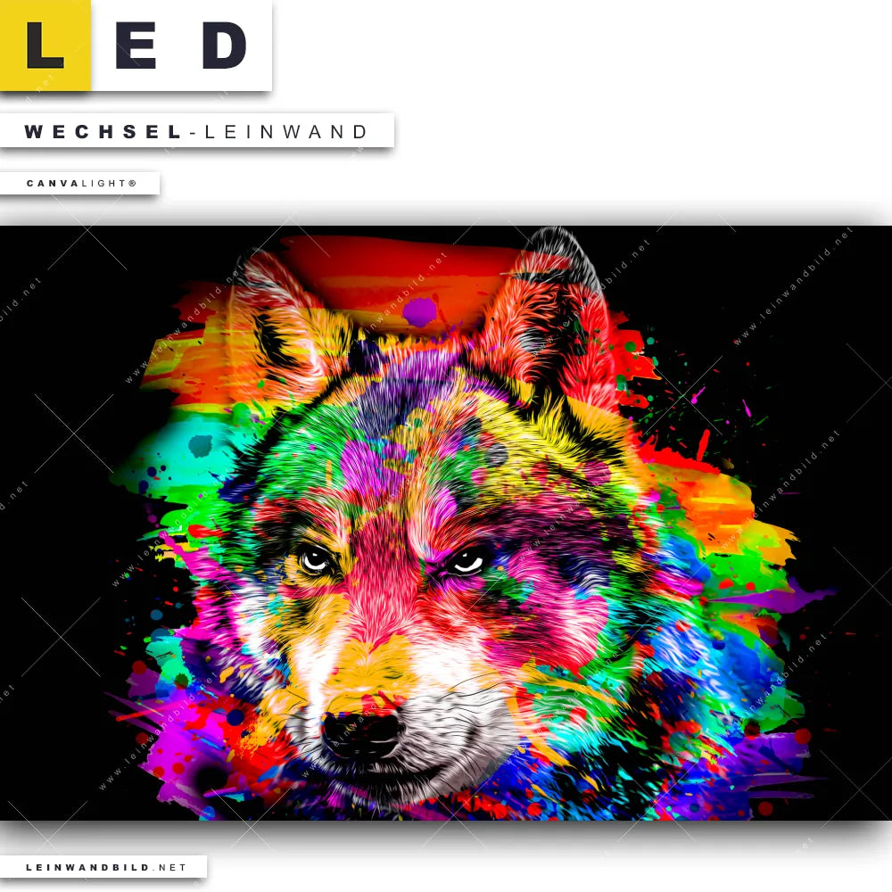 LED Wechsel-Leinwand Canvalight® TEX | Pop Art Wolf | Querformat