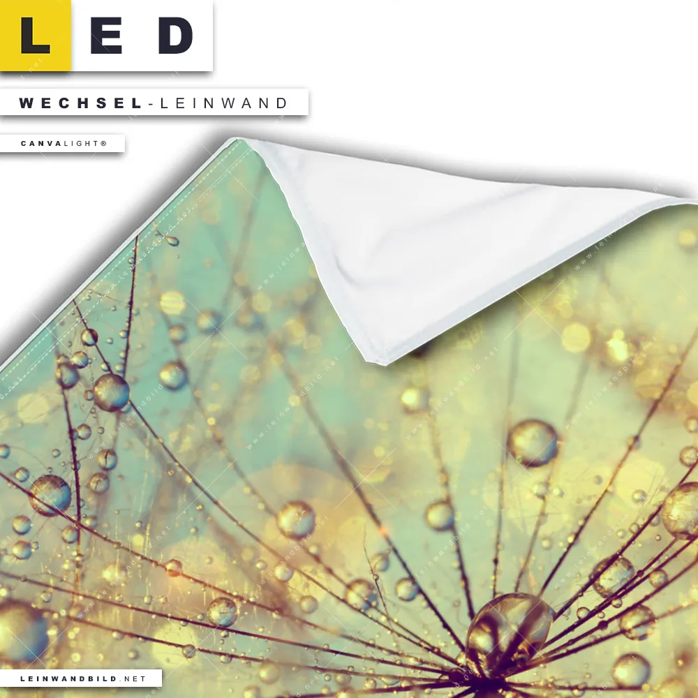Du bist auf der Suche nach einer Blumen - Botanik Wechsel-Leinwand für Dein LED-Leinwandbild im Quadratischen Format? Begriffe wie Blume, Botanik, Pflanze, Natur, Nahaufnahme, Pusteblume, Dandelion, Sonnenuntergang, Tautropfen haben Dich auf der Suche nach Deiner Ersatz-Leinwand für dein LED Wandbild mit wechselbarer Leinwand inspiriert? Farben wie Beige, Mint, Orange dürfen auf Deinem neuen Wechselmotiv für Dein XXL Leinwand-LED-Bild nicht fehlen und Leinwände im Floral, Abstrakt Stil für Leuchtbilder passen perfekt zu Deinem Einrichtungsstil?