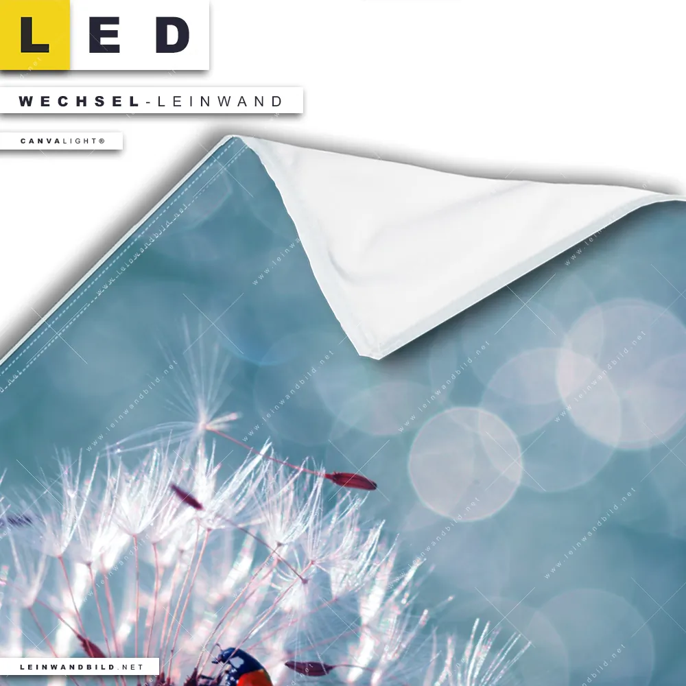 LED Wechsel-Leinwand Canvalight® TEX | Pusteblume & Marienkäfer | Querformat