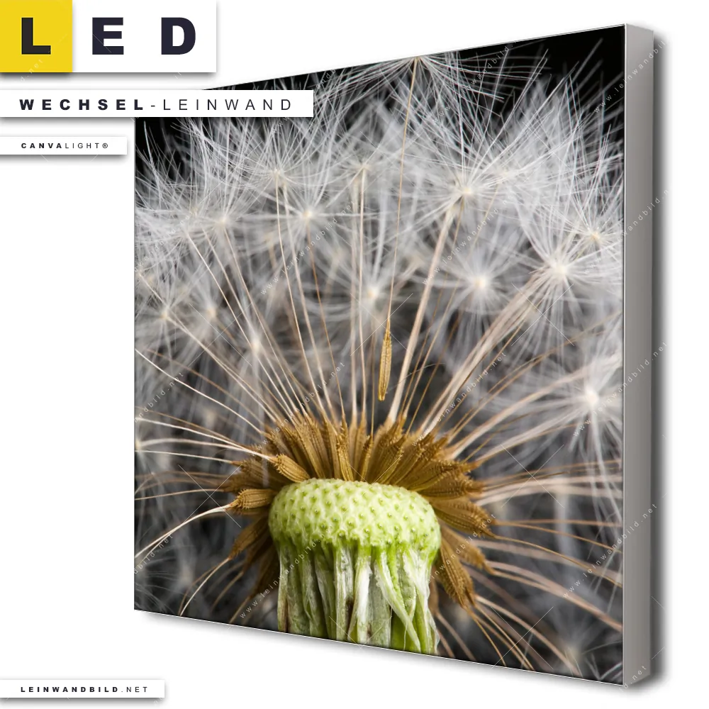 Du bist auf der Suche nach einer Blumen - Botanik Wechsel-Leinwand für Dein LED-Leinwandbild im Quadratischen Format? Begriffe wie Blume, Botanik, Pflanze, Natur, Nahaufnahme, Pusteblume, Dandelion, Löwenzahn haben Dich auf der Suche nach Deiner Ersatz-Leinwand für dein LED Wandbild mit wechselbarer Leinwand inspiriert? Farben wie Schwarz, Hellgrün, Braun, Weiss, Ocker dürfen auf Deinem neuen Wechselmotiv für Dein XXL Leinwand-LED-Bild nicht fehlen und Leinwände im Floral, Natürlich - Realistisch Stil für Leuchtbilder passen perfekt zu Deinem Einrichtungsstil?