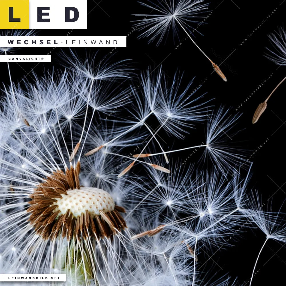Du bist auf der Suche nach einer Blumen - Botanik Wechsel-Leinwand für Dein LED-Leinwandbild im Schmalen Format? Begriffe wie Blume, Botanik, Pflanze, Natur, Nahaufnahme, Pusteblume, Dandelion, Löwenzahn haben Dich auf der Suche nach Deiner Ersatz-Leinwand für dein LED Wandbild im Panorama-Hochformat mit wechselbarer Leinwand inspiriert? Farben wie Weiss, Schwarz, Gelb , Grün, Hellgrün, Braun dürfen auf Deinem neuen Wechselmotiv für Dein XXL Leinwand-LED-Bild nicht fehlen und Leinwände im Floral, Natürlich - Realistisch Stil für Leuchtbilder passen perfekt zu Deinem Einrichtungsstil?