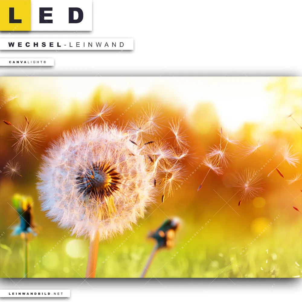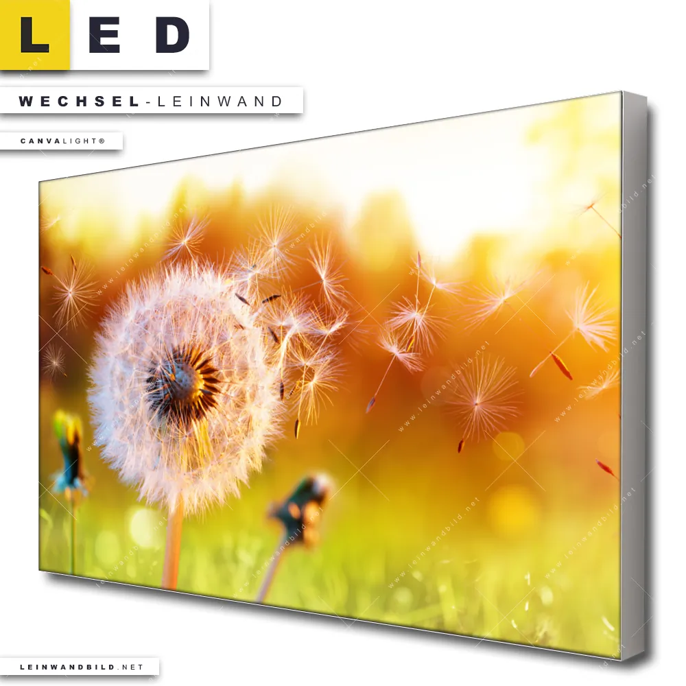 Du bist auf der Suche nach einer Blumen - Botanik Wechsel-Leinwand für Dein LED-Leinwandbild im Querformat? Begriffe wie Blume, Botanik, Pflanze, Natur, Nahaufnahme, Pusteblume, Dandelion, Löwenzahn haben Dich auf der Suche nach Deiner Ersatz-Leinwand für dein breites LED Wandbild mit wechselbarer Leinwand inspiriert? Farben wie Orange, Hellgrün dürfen auf Deinem neuen Wechselmotiv für Dein XXL Leinwand-LED-Bild nicht fehlen und Leinwände im Floral, Natürlich - Realistisch Stil für Leuchtbilder passen perfekt zu Deinem Einrichtungsstil?