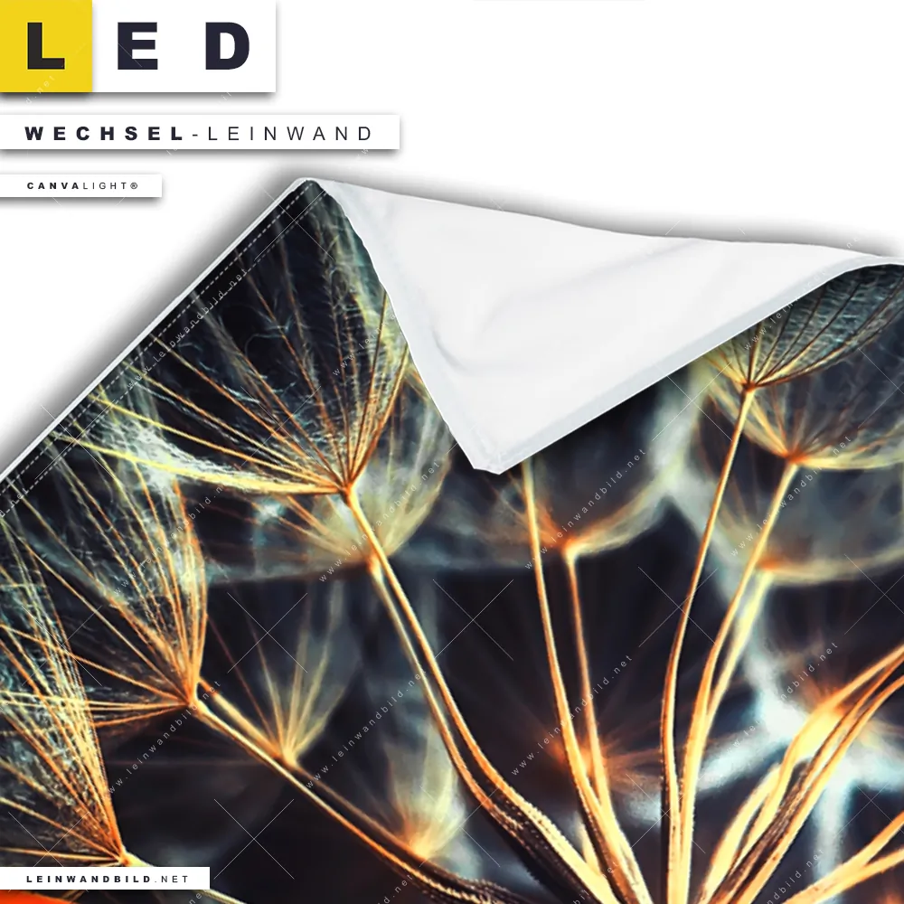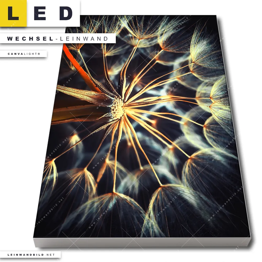 Du bist auf der Suche nach einer Blumen - Botanik Wechsel-Leinwand für Dein LED-Leinwandbild im Hochformat? Begriffe wie Blume, Botanik, Pflanze, Natur, Nahaufnahme, Pusteblume, Dandelion, Löwenzahn haben Dich auf der Suche nach Deiner Ersatz-Leinwand für dein LED Wandbild mit wechselbarer Leinwand inspiriert? Farben wie Schwarz, Beige, Blau, Orange, Ocker dürfen auf Deinem neuen Wechselmotiv für Dein XXL Leinwand-LED-Bild nicht fehlen und Leinwände im Floral, Natürlich - Realistisch Stil für Leuchtbilder passen perfekt zu Deinem Einrichtungsstil?