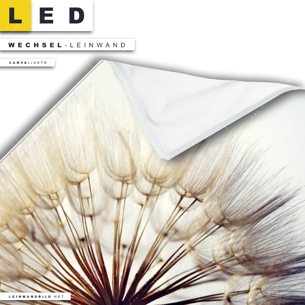 Du bist auf der Suche nach einer Blumen - Botanik Wechsel-Leinwand für Dein LED-Leinwandbild im Quadratischen Format? Begriffe wie Blume, Botanik, Pflanze, Natur, Nahaufnahme, Pusteblume, Dandelion haben Dich auf der Suche nach Deiner Ersatz-Leinwand für dein LED Wandbild mit wechselbarer Leinwand inspiriert? Farben wie Beige, Weiss dürfen auf Deinem neuen Wechselmotiv für Dein XXL Leinwand-LED-Bild nicht fehlen und Leinwände im Floral, Natürlich - Realistisch Stil für Leuchtbilder passen perfekt zu Deinem Einrichtungsstil?