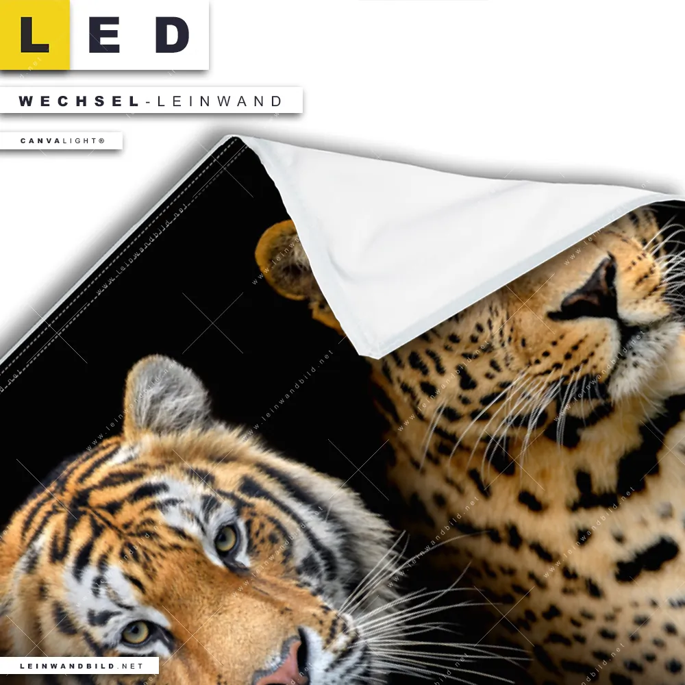 Du konfigurierst Deine individuelle LED Wechsel-Leinwand Canvalight® TEX | Raubkatzen | Quadrat und wir produzieren sie NEU für Dich. Unsere Tierwelt Austausch-Fotoleinwände für Canvalight® LED Bilder sind KEINE Lagerware. Du bist Dir unsicher, welches Motiv oder Format das richtige für dein individuelles LED Wechselmotiv auf Leinwand ist, dann helfen wir dir gerne weiter und beraten dich!