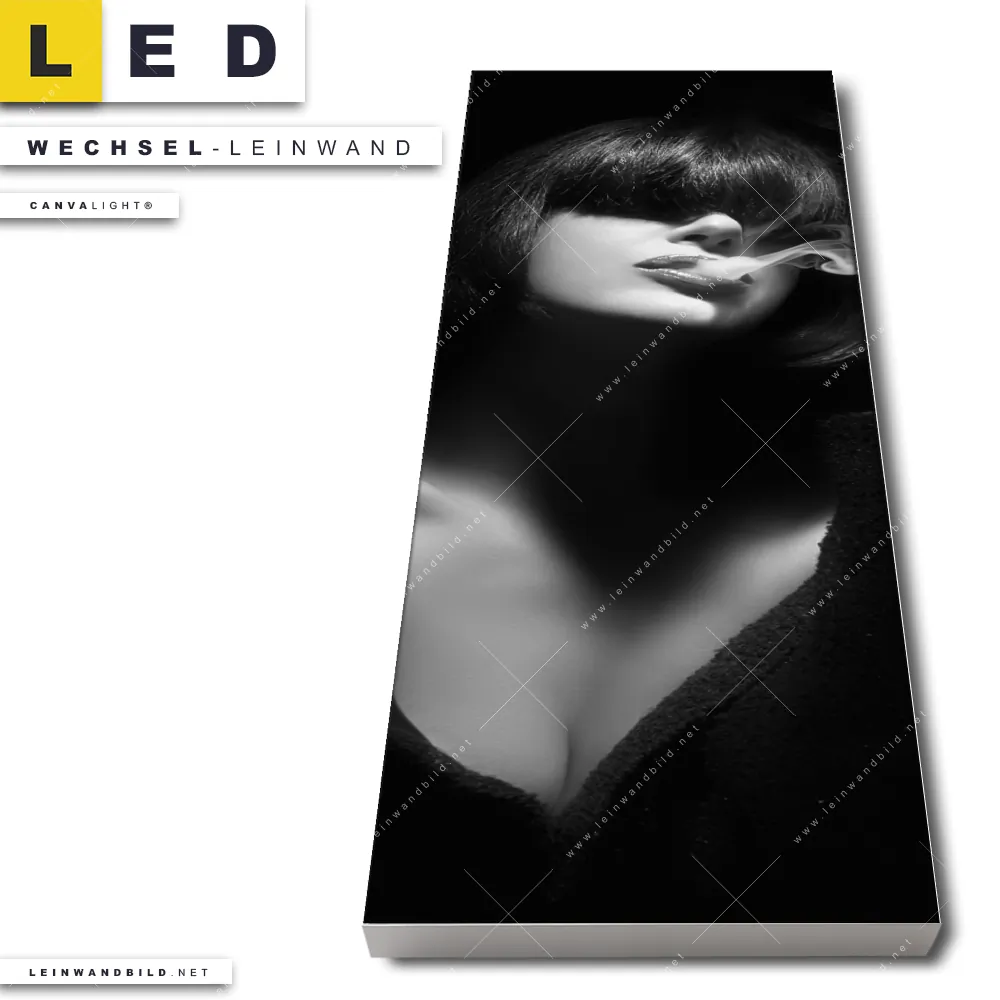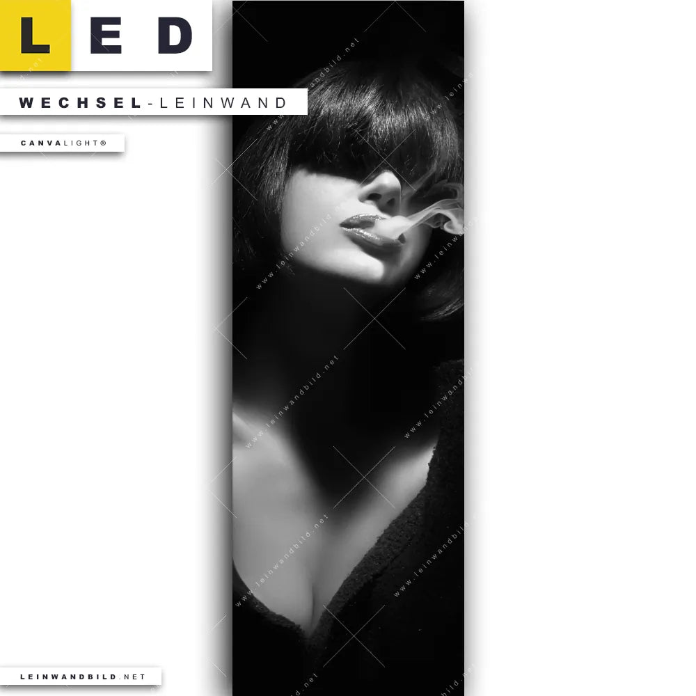 Du konfigurierst Deine individuelle LED Wechsel-Leinwand Canvalight® TEX | Rauchende Lady | Schmal und wir produzieren sie NEU für Dich. Unsere Porträts - Menschen Austausch-Fotoleinwände für Canvalight® LED Bilder sind KEINE Lagerware. Du bist Dir unsicher, welches Motiv oder Format das richtige für dein individuelles LED Wechselmotiv auf Leinwand ist, dann helfen wir dir gerne weiter und beraten dich!