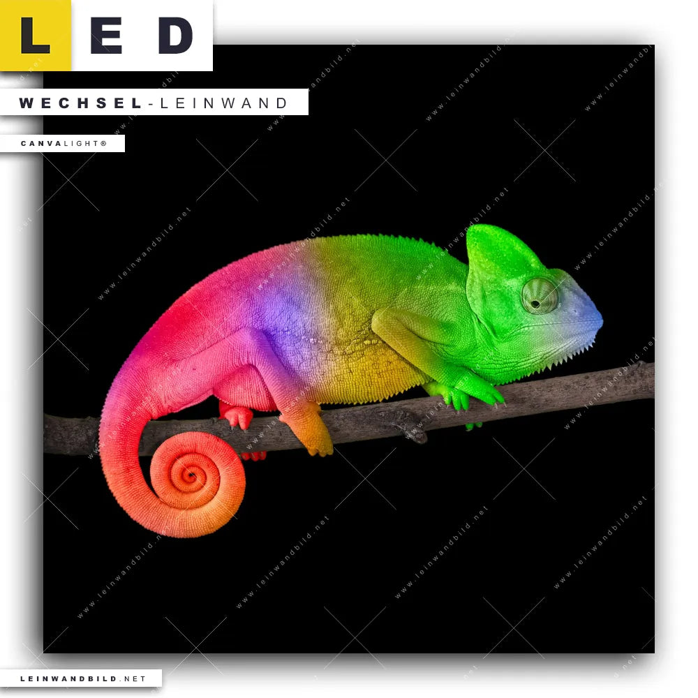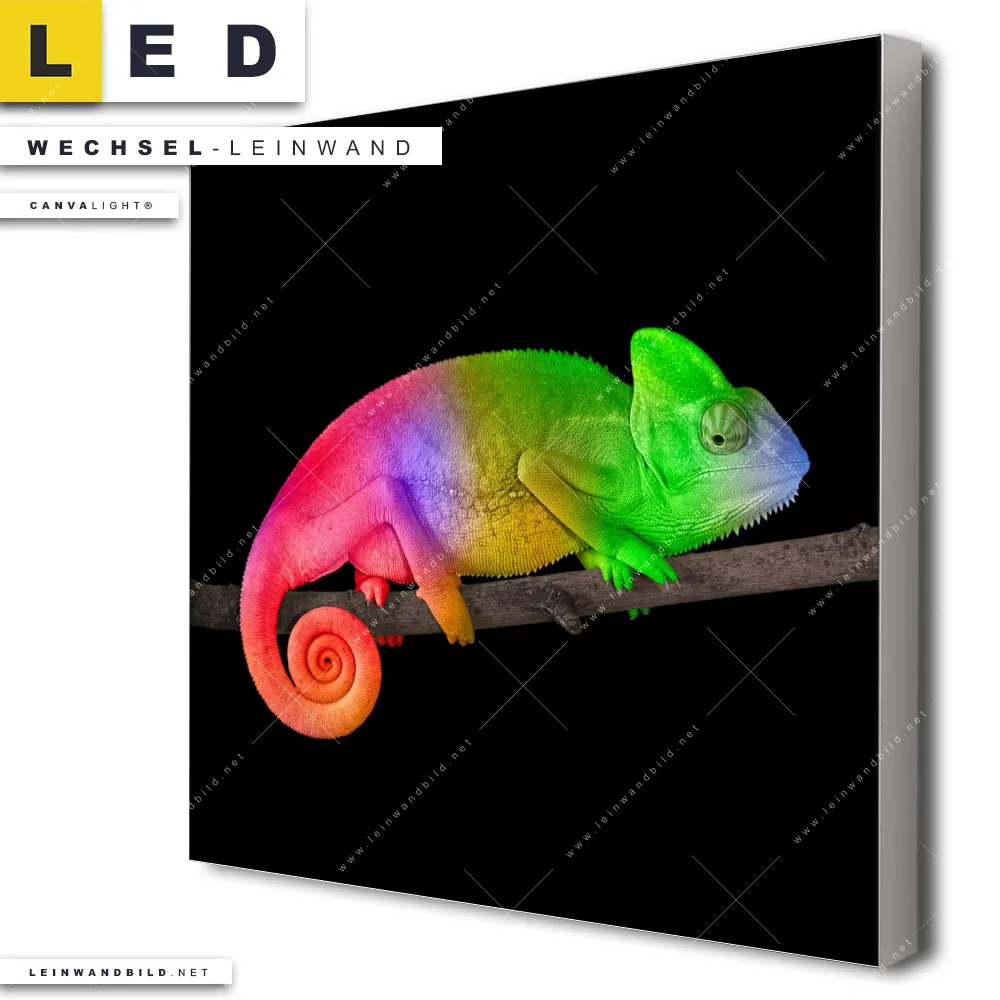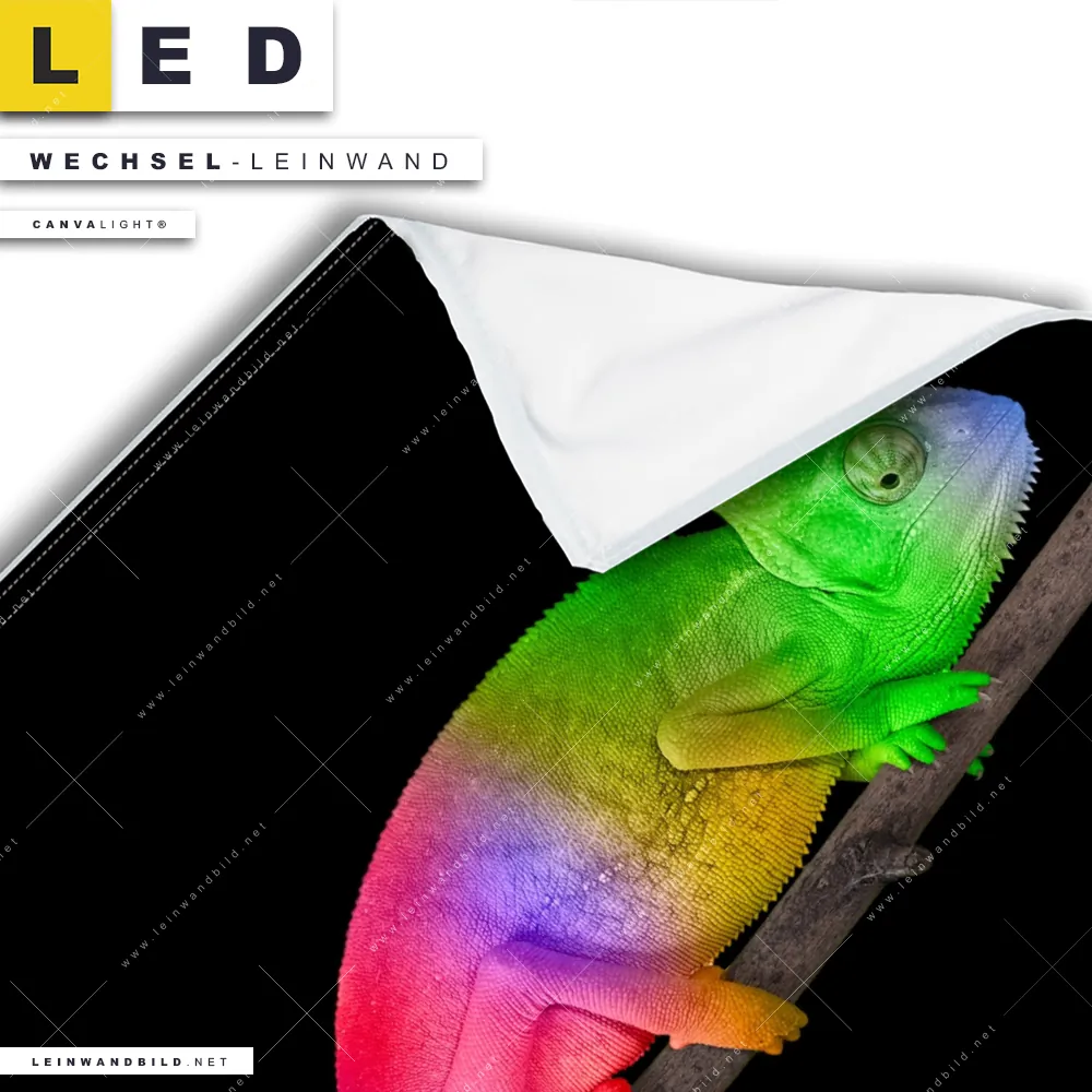 Du bist auf der Suche nach einer Tierwelt Wechsel-Leinwand für Dein LED-Leinwandbild im Quadratischen Format? Begriffe wie Tiere, Farbe, bunt, Chamäleon, Regenbogen, Pop Art haben Dich auf der Suche nach Deiner Ersatz-Leinwand für dein LED Wandbild mit wechselbarer Leinwand inspiriert? Farben wie Schwarz, Bunt dürfen auf Deinem neuen Wechselmotiv für Dein XXL Leinwand-LED-Bild nicht fehlen und Leinwände im Mixed Media, Modern Art, Pop Art Stil für Leuchtbilder passen perfekt zu Deinem Einrichtungsstil?