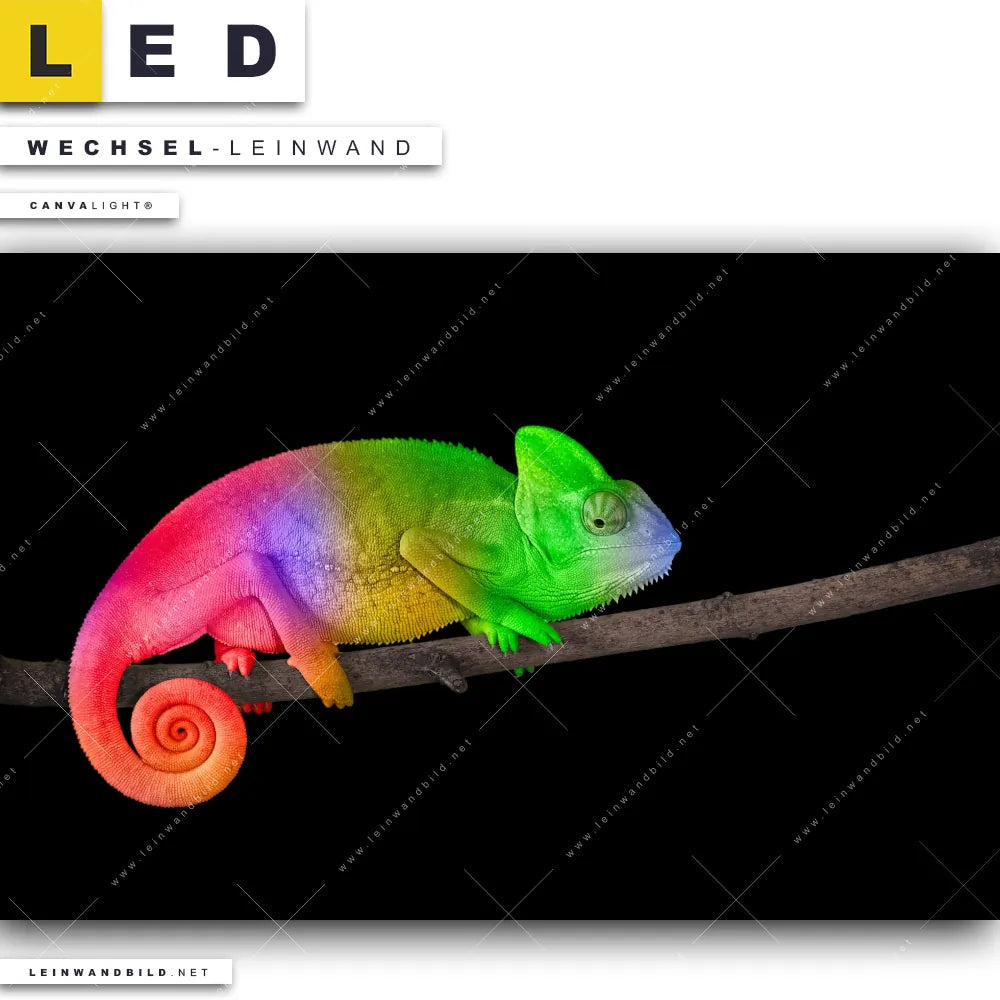 Du bist auf der Suche nach einer Tierwelt Wechsel-Leinwand für Dein LED-Leinwandbild im Querformat? Begriffe wie Tiere, Farbe, bunt, Chamäleon, Regenbogen, Pop Art haben Dich auf der Suche nach Deiner Ersatz-Leinwand für dein breites LED Wandbild mit wechselbarer Leinwand inspiriert? Farben wie Schwarz, Bunt dürfen auf Deinem neuen Wechselmotiv für Dein XXL Leinwand-LED-Bild nicht fehlen und Leinwände im Mixed Media, Modern Art, Pop Art Stil für Leuchtbilder passen perfekt zu Deinem Einrichtungsstil?