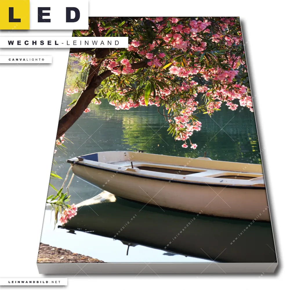LED Wechsel-Leinwand Canvalight® TEX | Romantische Bootstour | Hochformat