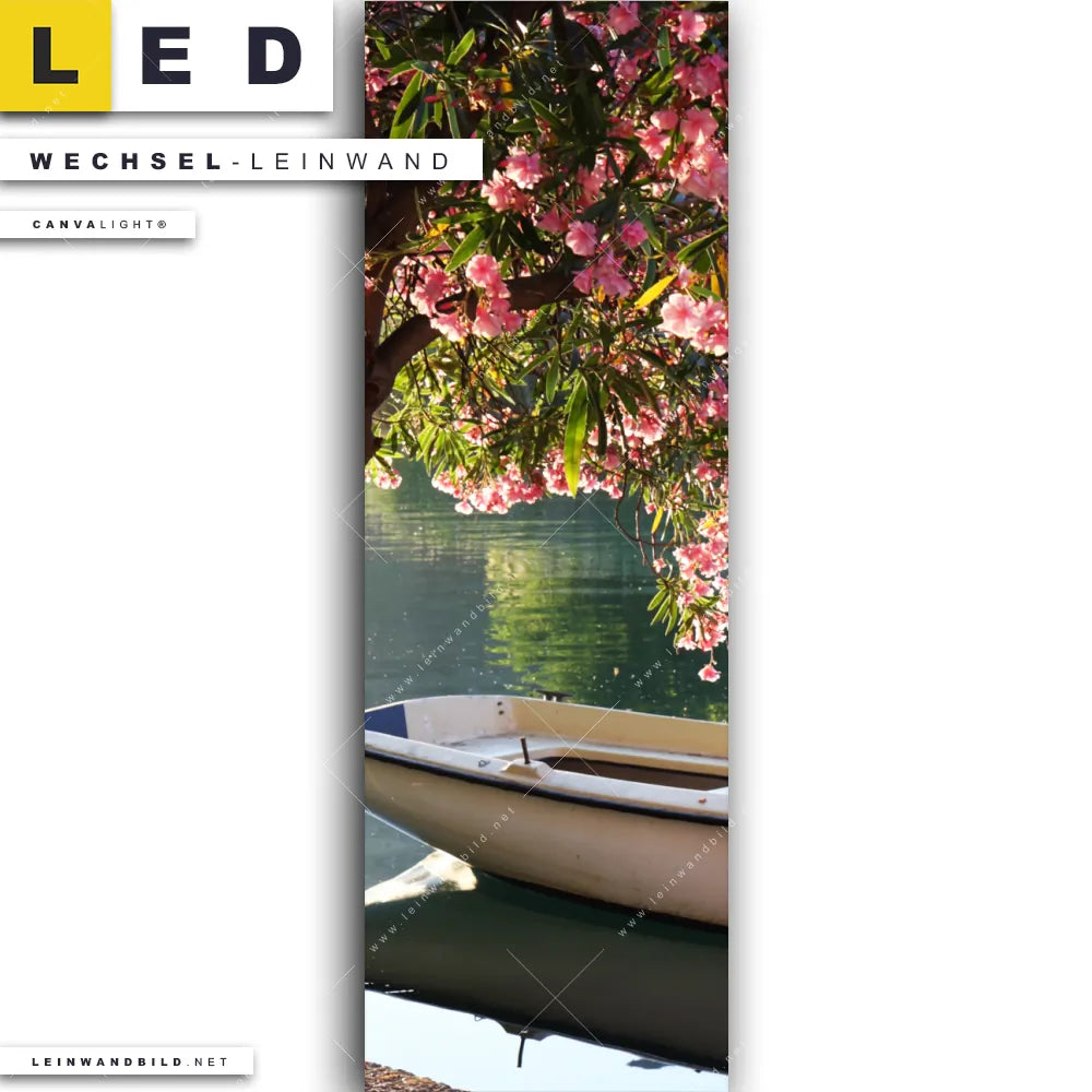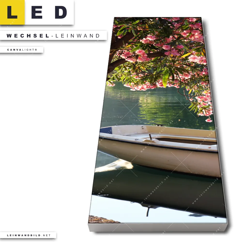 Du konfigurierst Deine individuelle LED Wechsel-Leinwand Canvalight® TEX | Romantische Bootstour | Schmal und wir produzieren sie NEU für Dich. Unsere Landschaften Austausch-Fotoleinwände für Canvalight® LED Bilder sind KEINE Lagerware. Du bist Dir unsicher, welches Motiv oder Format das richtige für dein individuelles LED Wechselmotiv auf Leinwand ist, dann helfen wir dir gerne weiter und beraten dich!