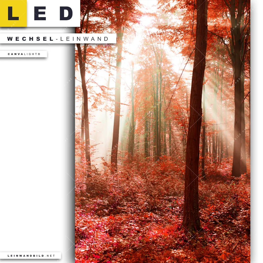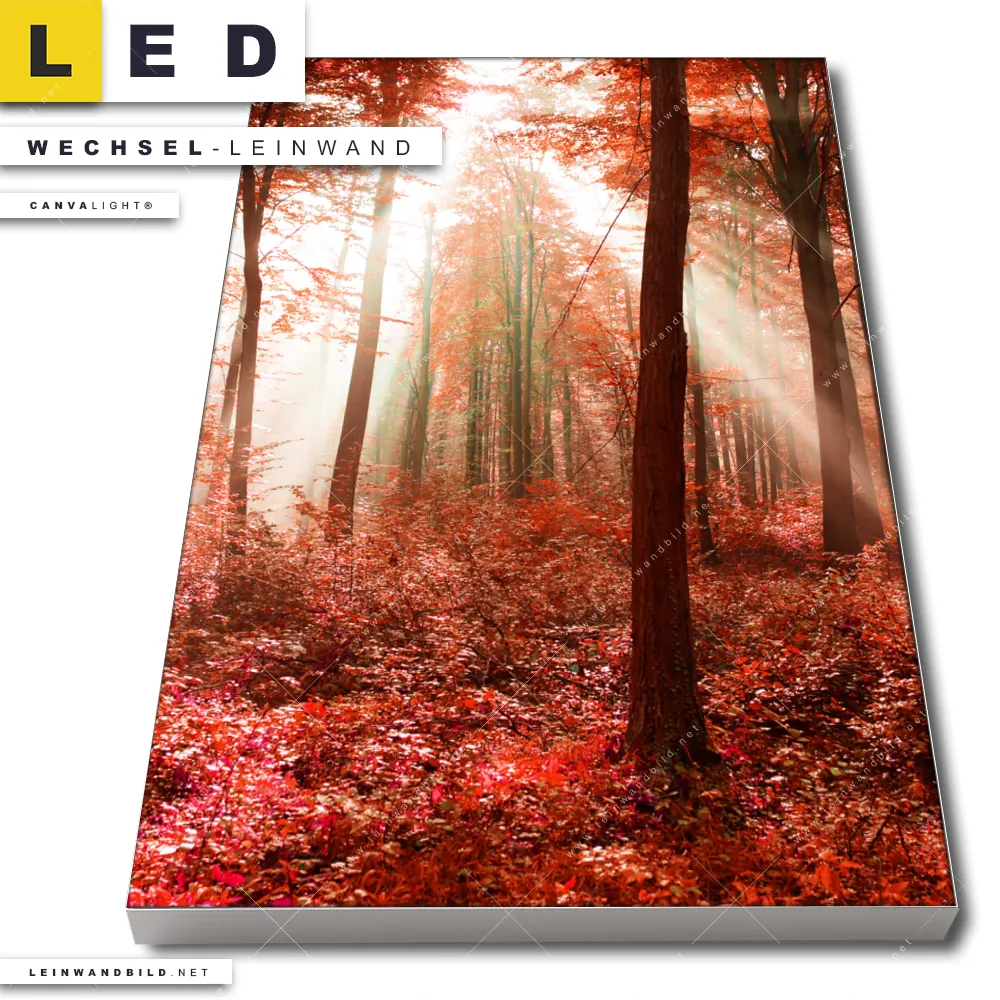 LED Wechsel-Leinwand Canvalight® TEX | Roter Herbstwald | Hochformat