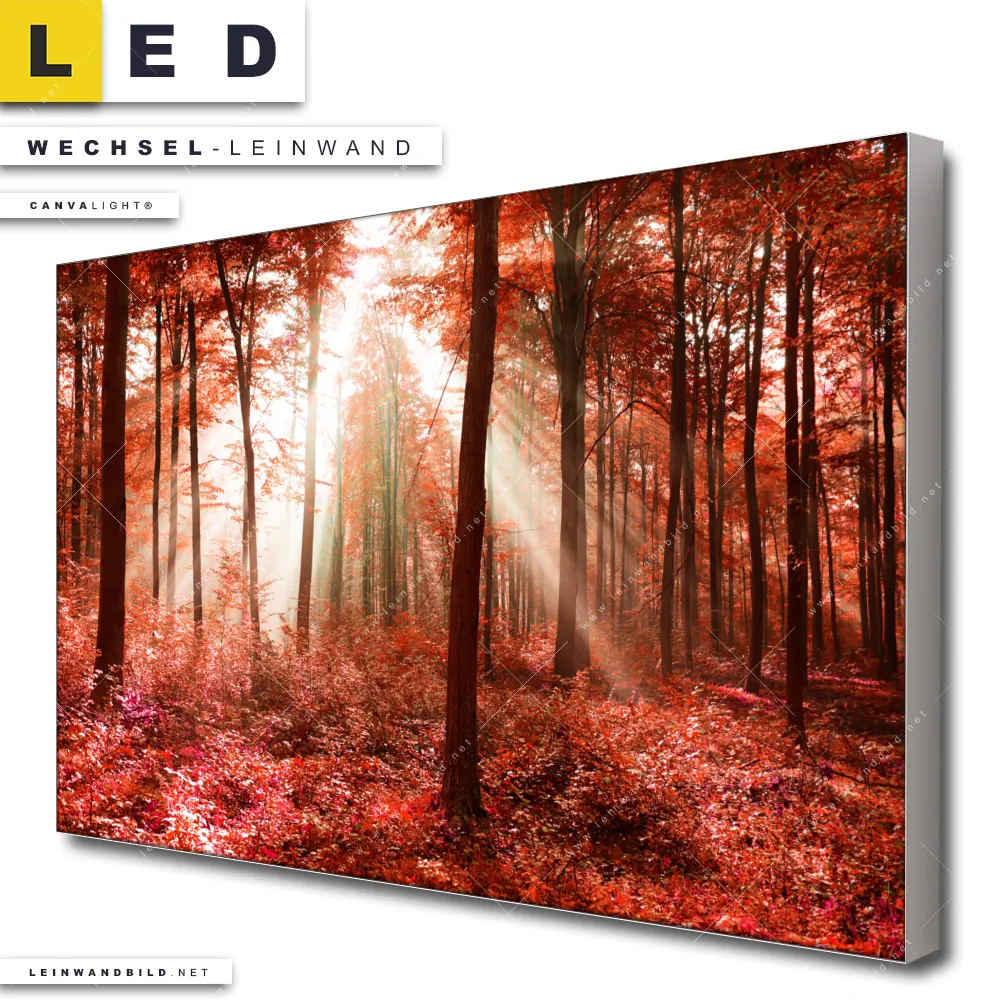 Du konfigurierst Deine individuelle LED Wechsel-Leinwand Canvalight® TEX | Roter Herbstwald | Querformat und wir produzieren sie NEU für Dich. Unsere Landschaften, Wald - Bäume Austausch-Fotoleinwände für Canvalight® LED Bilder sind KEINE Lagerware. Du bist Dir unsicher, welches Motiv oder Format das richtige für dein individuelles LED Wechselmotiv auf Leinwand ist, dann helfen wir dir gerne weiter und beraten dich!