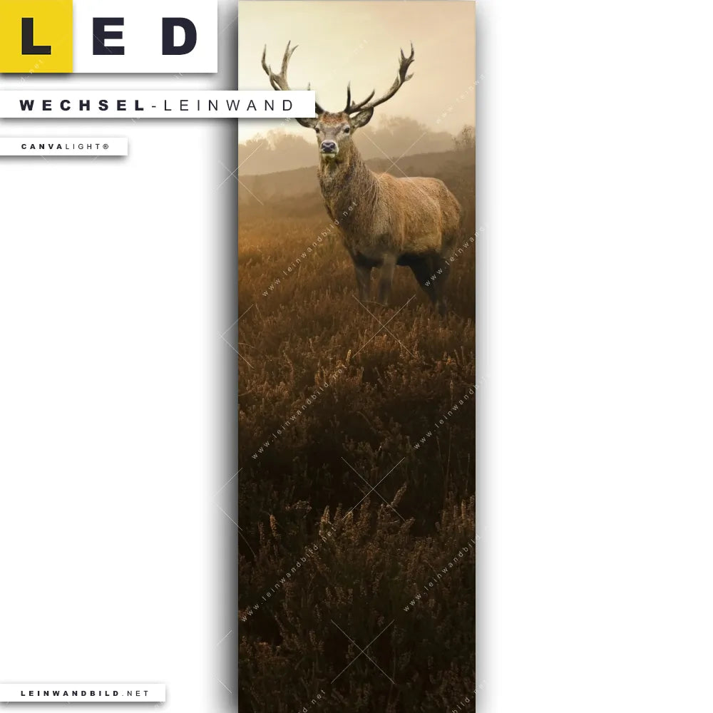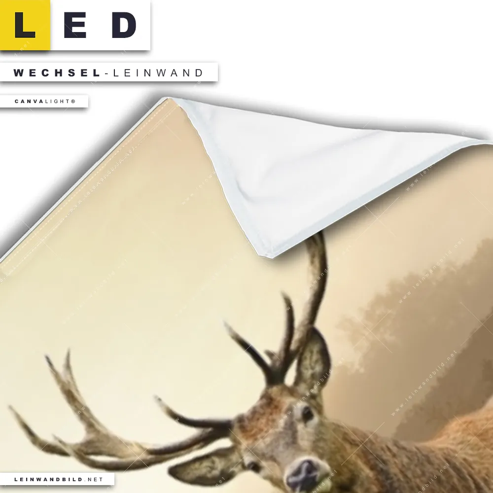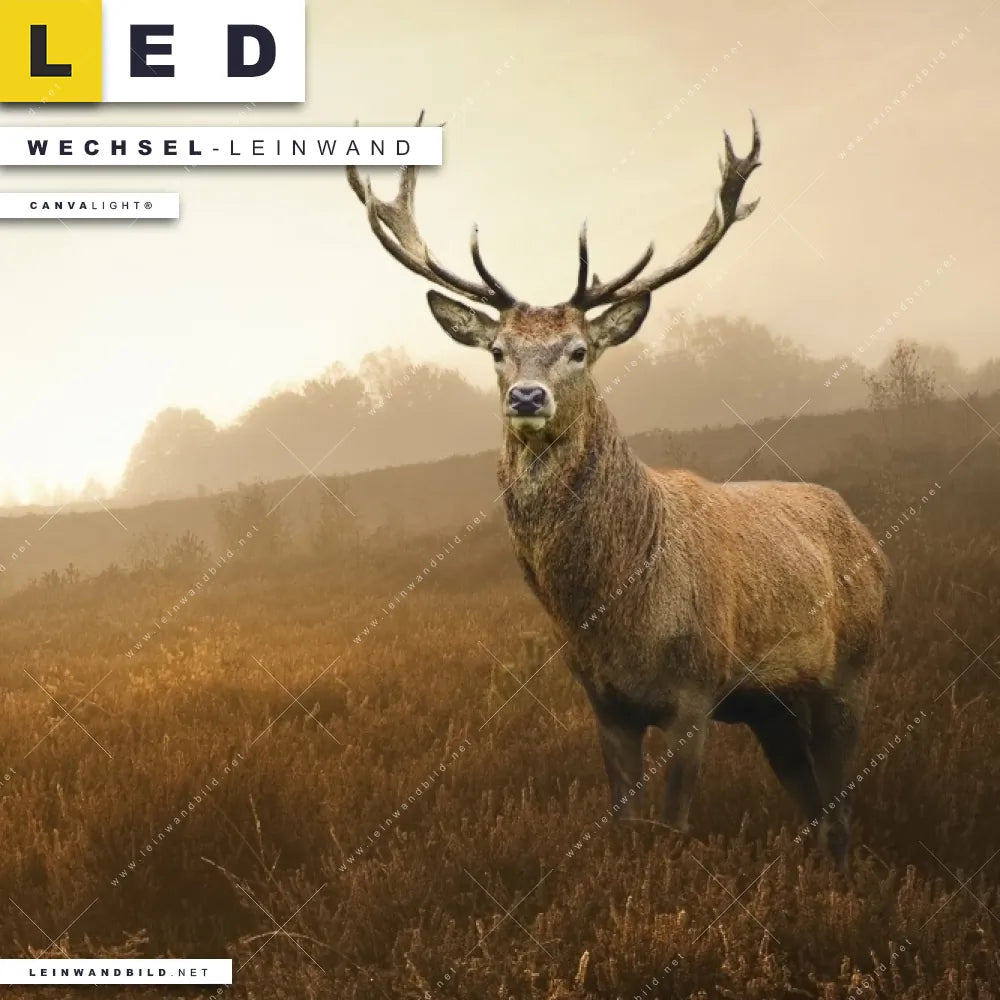 Du bist auf der Suche nach einer Landschaften, Tierwelt Wechsel-Leinwand für Dein LED-Leinwandbild im Schmalen Format? Begriffe wie Nebel, Natur, Hirsch, Deer, Wild, Rotwild, Wiese, Weide, Feld, Wald haben Dich auf der Suche nach Deiner Ersatz-Leinwand für dein LED Wandbild im Panorama-Hochformat mit wechselbarer Leinwand inspiriert? Farben wie Beige, Braun dürfen auf Deinem neuen Wechselmotiv für Dein XXL Leinwand-LED-Bild nicht fehlen und Leinwände im Natürlich - Realistisch Stil für Leuchtbilder passen perfekt zu Deinem Einrichtungsstil?