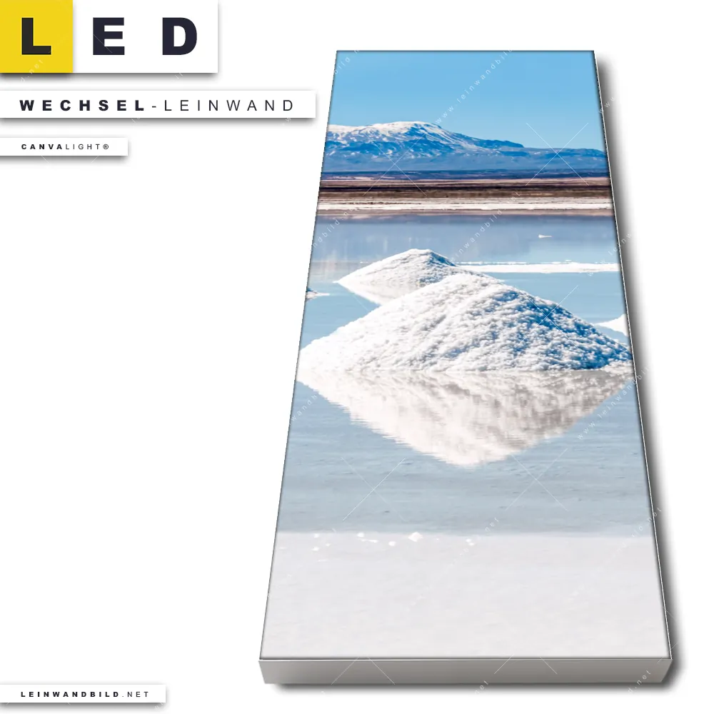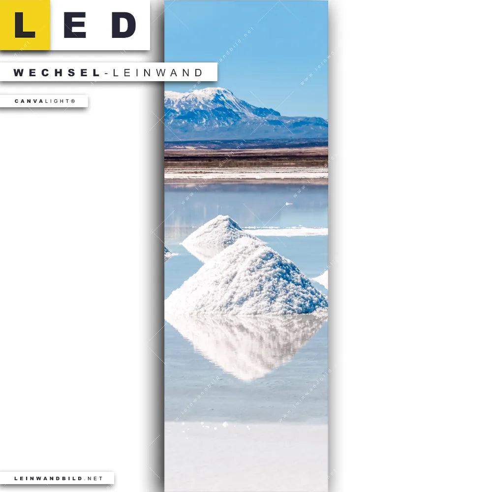 Du konfigurierst Deine individuelle LED Wechsel-Leinwand Canvalight® TEX | Salzlandschaft in den Anden | Schmal und wir produzieren sie NEU für Dich. Unsere Landschaften Austausch-Fotoleinwände für Canvalight® LED Bilder sind KEINE Lagerware. Du bist Dir unsicher, welches Motiv oder Format das richtige für dein individuelles LED Wechselmotiv auf Leinwand ist, dann helfen wir dir gerne weiter und beraten dich!