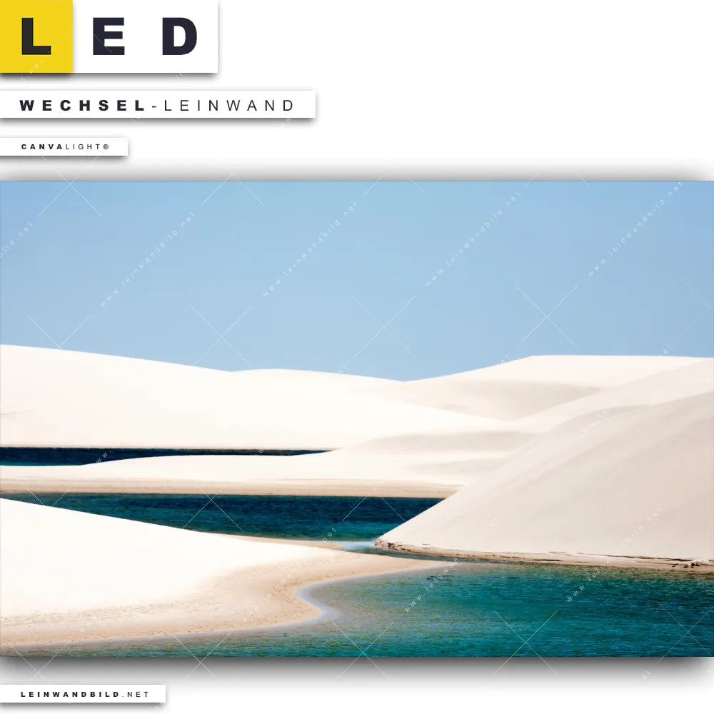 Du konfigurierst Deine individuelle LED Wechsel-Leinwand Canvalight® TEX | Sanddünen und Seen | Querformat und wir produzieren sie NEU für Dich. Unsere Landschaften Austausch-Fotoleinwände für Canvalight® LED Bilder sind KEINE Lagerware. Du bist Dir unsicher, welches Motiv oder Format das richtige für dein individuelles LED Wechselmotiv auf Leinwand ist, dann helfen wir dir gerne weiter und beraten dich!