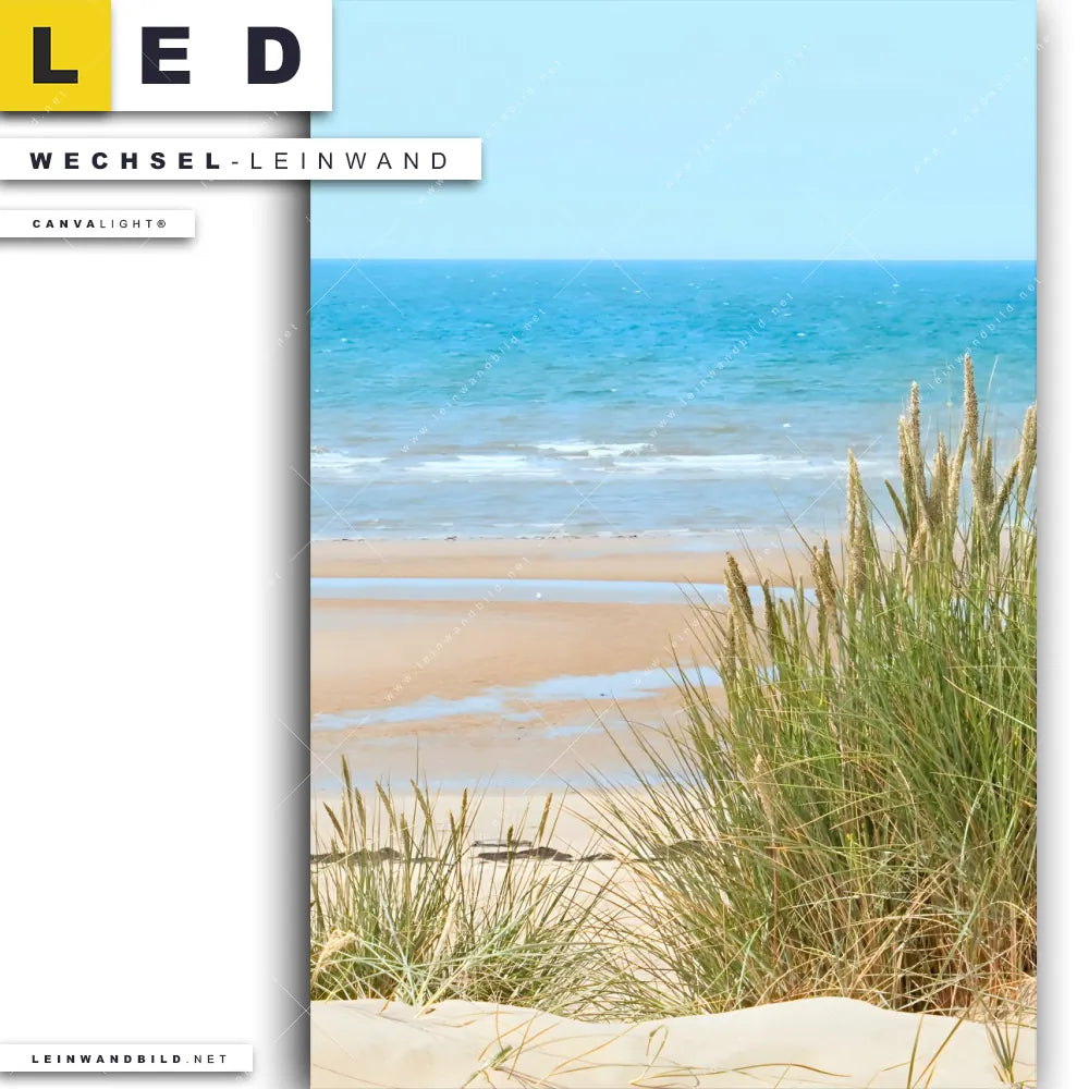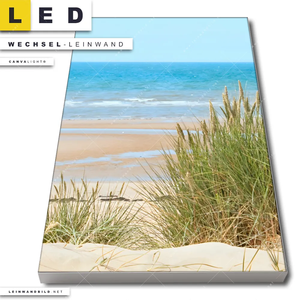 Du bist auf der Suche nach einer Landschaften, Strand - Meer Wechsel-Leinwand für Dein LED-Leinwandbild im Hochformat? Begriffe wie Deutschland, Sommer, Urlaub - Reisen, Ostsee - Nordsee, Dünen, Gräser haben Dich auf der Suche nach Deiner Ersatz-Leinwand für dein LED Wandbild mit wechselbarer Leinwand inspiriert? Farben wie Beige, Grün, Blau dürfen auf Deinem neuen Wechselmotiv für Dein XXL Leinwand-LED-Bild nicht fehlen und Leinwände im Retro - Vintage, Natürlich - Realistisch Stil für Leuchtbilder passen perfekt zu Deinem Einrichtungsstil?