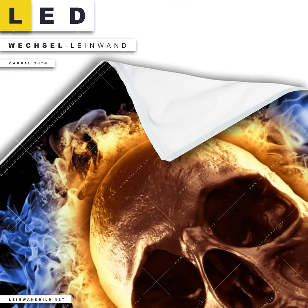 LED Wechsel-Leinwand Canvalight® TEX | Schädel in Flammen | Hochformat