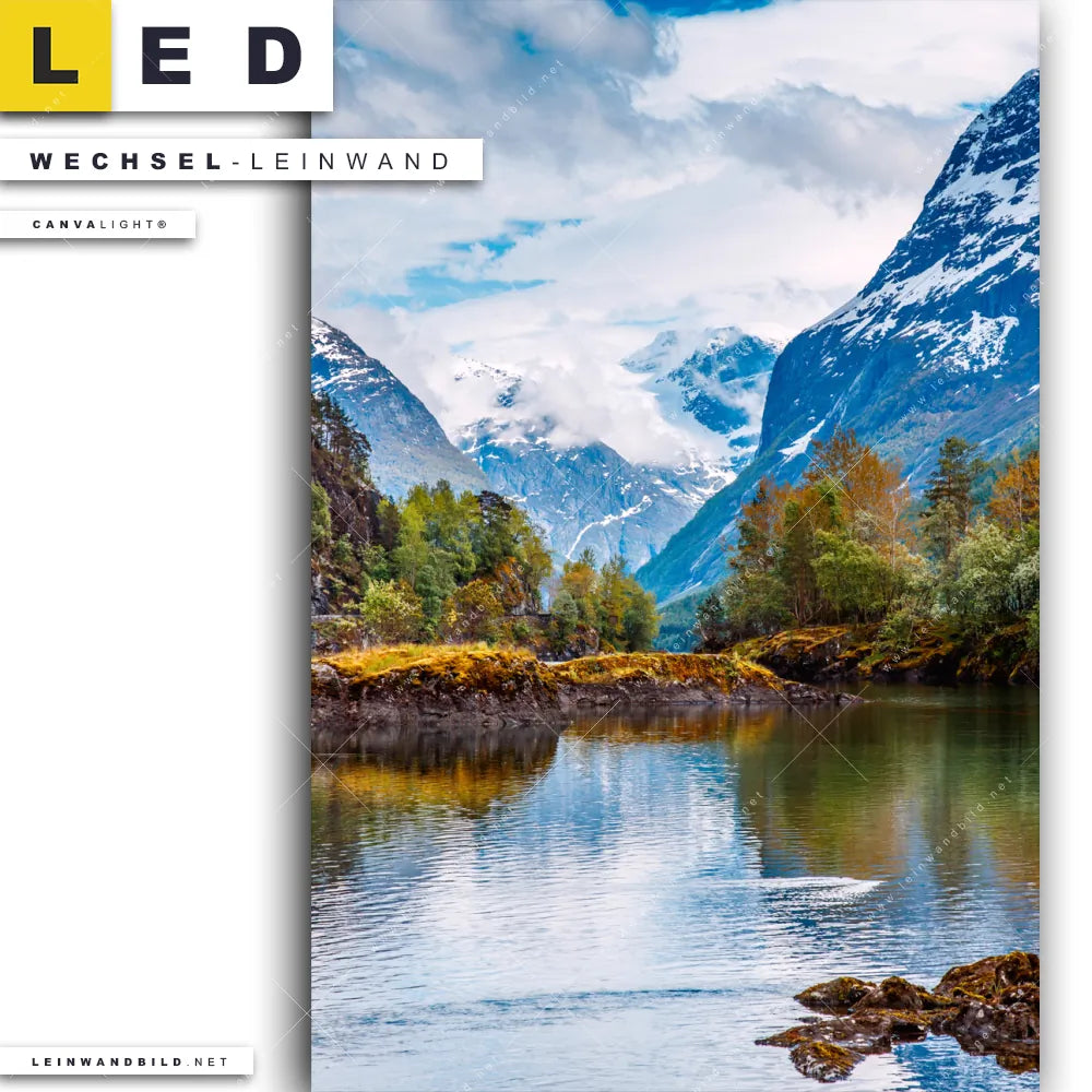 LED Wechsel-Leinwand Canvalight® TEX | Schöne Natur in Norwegen | Hochformat