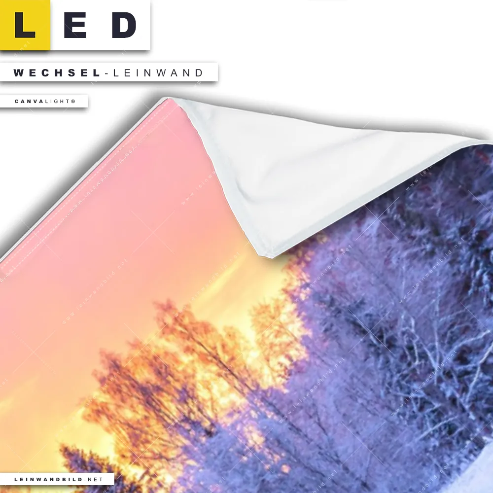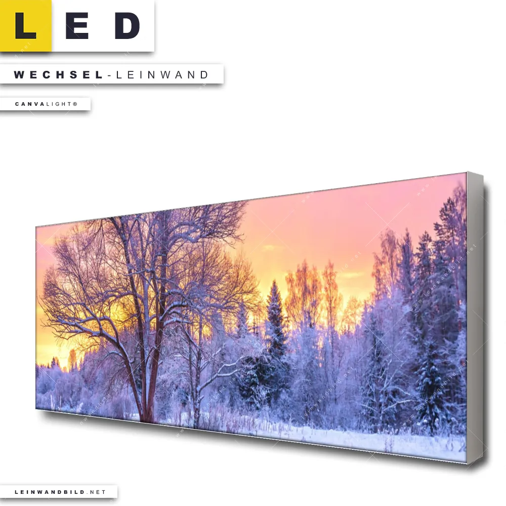 Du bist auf der Suche nach einer Landschaften, Winter, Wald - Bäume Wechsel-Leinwand für Dein LED-Leinwandbild im Panorama-Format? Begriffe wie Schneelandschaft, Winter, Schnee, Sonnenaufgang, Weihnachten, Wald haben Dich auf der Suche nach Deiner Ersatz-Leinwand für dein extra breites LED Wandbild mit wechselbarer Leinwand inspiriert? Farben wie Weiss, Orange, Lila, Pink dürfen auf Deinem neuen Wechselmotiv für Dein XXL Leinwand-LED-Bild nicht fehlen und Leinwände im Natürlich - Realistisch Stil für Leuchtbilder passen perfekt zu Deinem Einrichtungsstil?