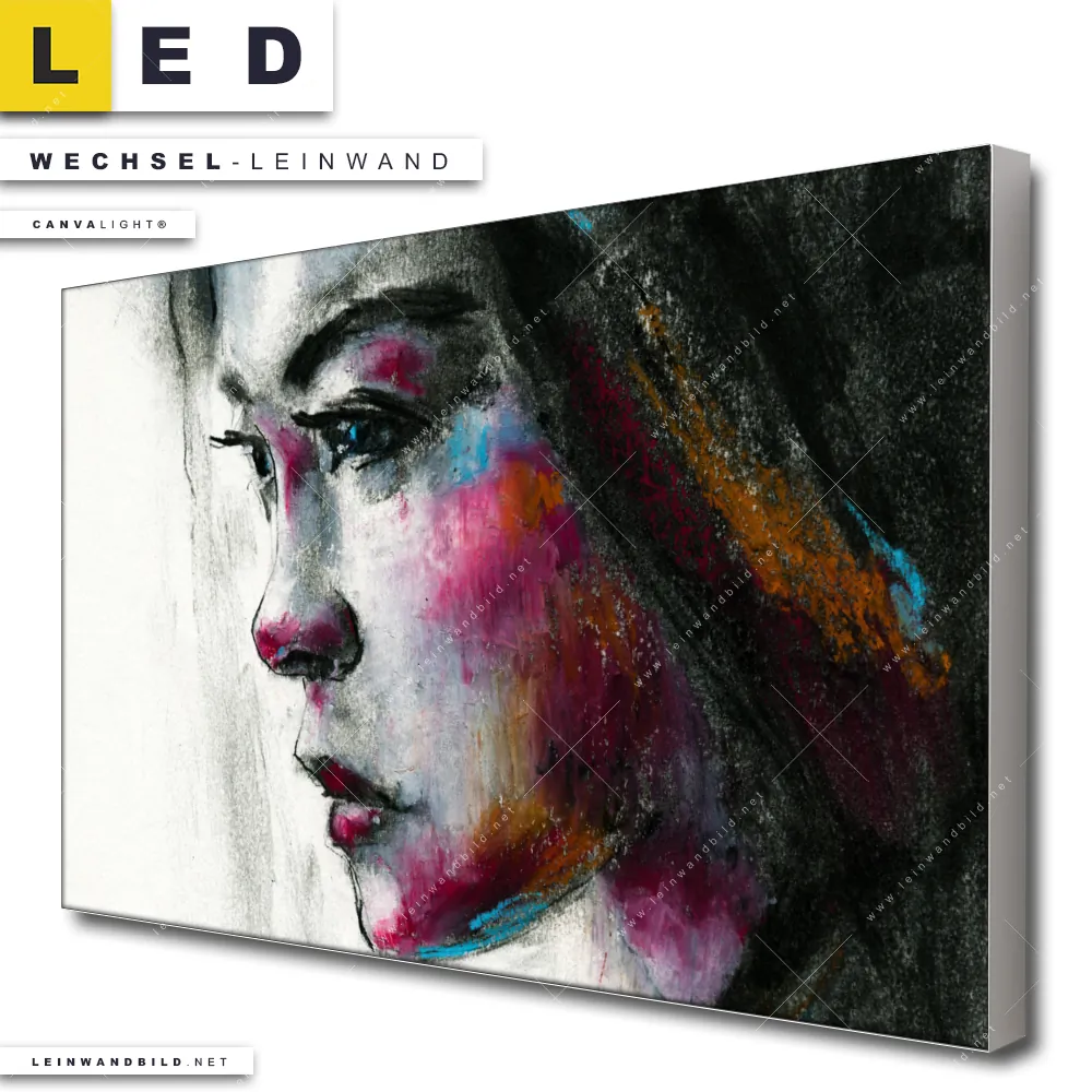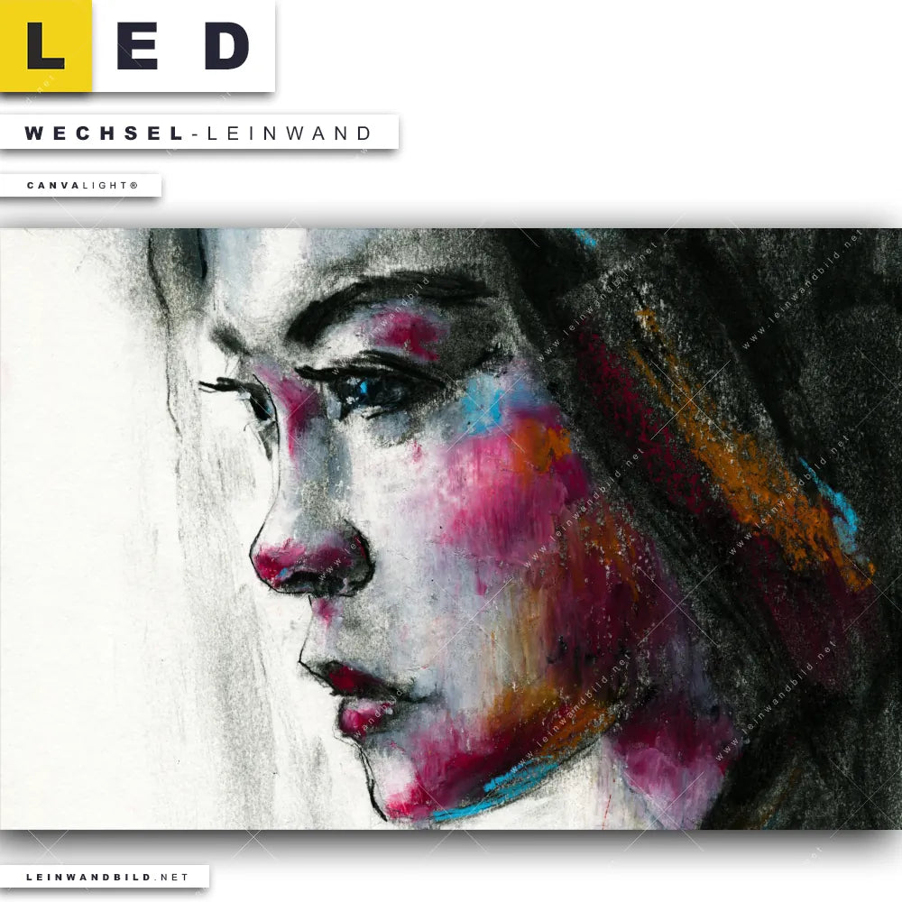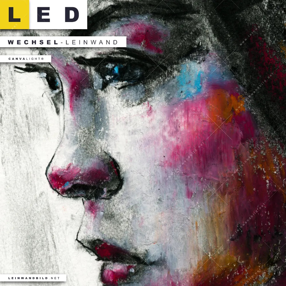 Du bist auf der Suche nach einer Porträts - Menschen Wechsel-Leinwand für Dein LED-Leinwandbild im Querformat? Begriffe wie Abstrakt, Modern, Kunst, Gemälde, Ölfarbe, Leinwand, Frau, Portrait, Geheimnis, schweigen, Lippen haben Dich auf der Suche nach Deiner Ersatz-Leinwand für dein breites LED Wandbild mit wechselbarer Leinwand inspiriert? Farben wie Weiss, Schwarz, Pink dürfen auf Deinem neuen Wechselmotiv für Dein XXL Leinwand-LED-Bild nicht fehlen und Leinwände im Abstrakt, Modern Art Stil für Leuchtbilder passen perfekt zu Deinem Einrichtungsstil?