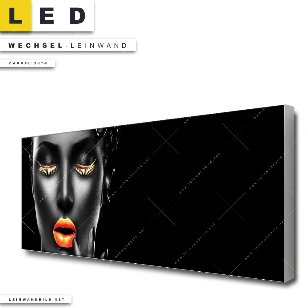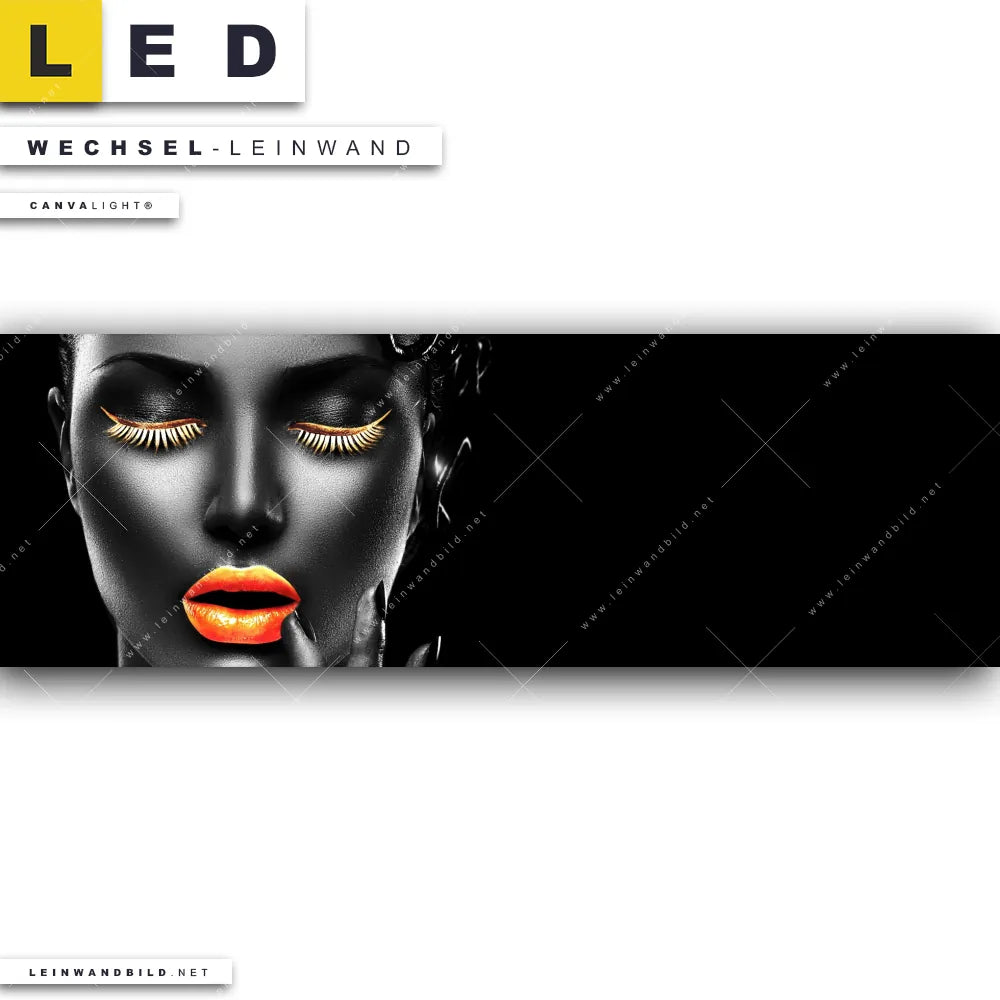 Du bist auf der Suche nach einer Porträts - Menschen Wechsel-Leinwand für Dein LED-Leinwandbild im Panorama-Format? Begriffe wie Frau, Lippen, Mund, Porträt, Erotik, modern, Gold, Silber, Farbe, Beauty haben Dich auf der Suche nach Deiner Ersatz-Leinwand für dein extra breites LED Wandbild mit wechselbarer Leinwand inspiriert? Farben wie Gold, Silber, Schwarz dürfen auf Deinem neuen Wechselmotiv für Dein XXL Leinwand-LED-Bild nicht fehlen und Leinwände im Modern Art, Schwarz - Weiss Stil für Leuchtbilder passen perfekt zu Deinem Einrichtungsstil?
