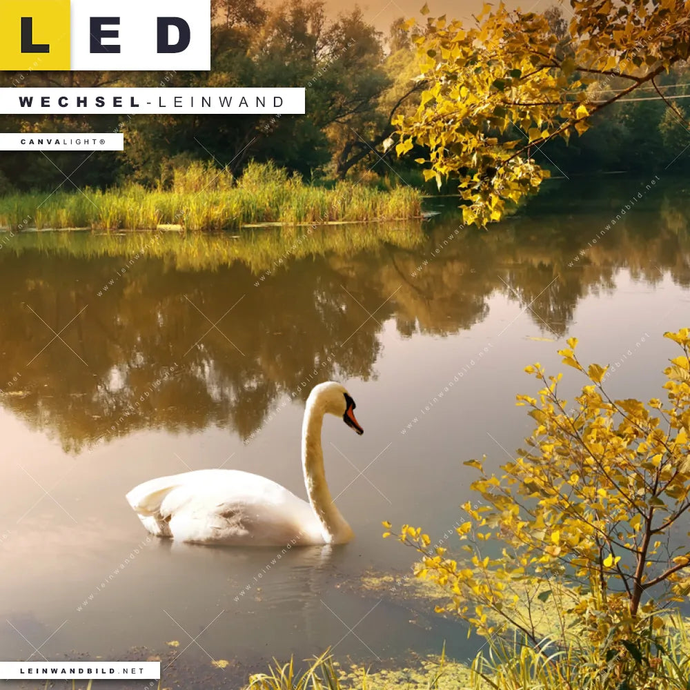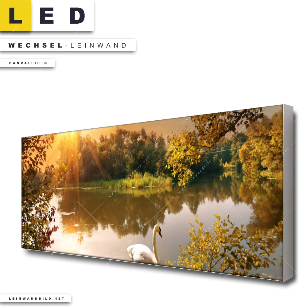 Du bist auf der Suche nach einer Landschaften, Tierwelt Wechsel-Leinwand für Dein LED-Leinwandbild im Panorama-Format? Begriffe wie Sonnenuntergang, Nebel, Morgenstimmung, See, Angeln, Teich, Herbst, Schwan haben Dich auf der Suche nach Deiner Ersatz-Leinwand für dein extra breites LED Wandbild mit wechselbarer Leinwand inspiriert? Farben wie Braun, Grün, Beige, Orange, Weiss dürfen auf Deinem neuen Wechselmotiv für Dein XXL Leinwand-LED-Bild nicht fehlen und Leinwände im Retro - Vintage Stil für Leuchtbilder passen perfekt zu Deinem Einrichtungsstil?