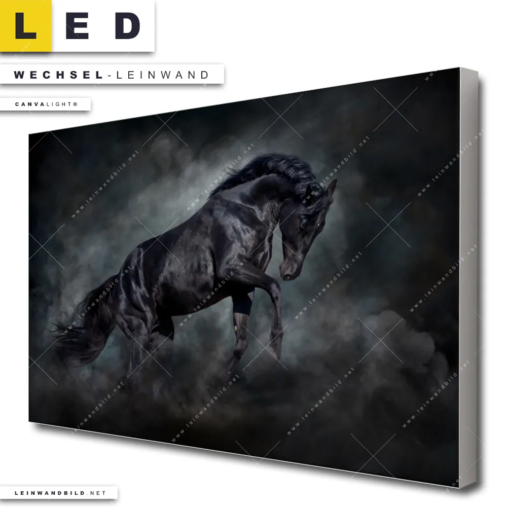 Du konfigurierst Deine individuelle LED Wechsel-Leinwand Canvalight® TEX | Schwarzer Hengst | Querformat und wir produzieren sie NEU für Dich. Unsere Tierwelt Austausch-Fotoleinwände für Canvalight® LED Bilder sind KEINE Lagerware. Du bist Dir unsicher, welches Motiv oder Format das richtige für dein individuelles LED Wechselmotiv auf Leinwand ist, dann helfen wir dir gerne weiter und beraten dich!