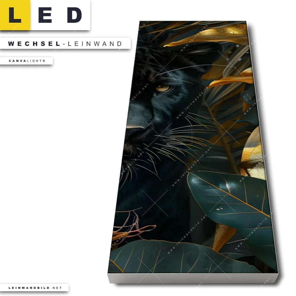 LED Wechsel-Leinwand Canvalight® TEX | Schwarzer Panther im Dschungel | Schmal