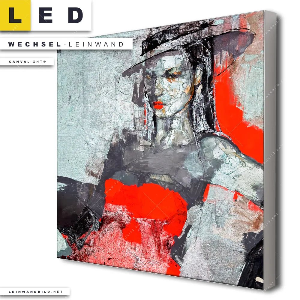 Du bist auf der Suche nach einer Porträts - Menschen Wechsel-Leinwand für Dein LED-Leinwandbild im Quadratischen Format? Begriffe wie Abstrakt, Modern, Kunst, Gemälde, Leinwand, Frau, Portrait, Geheimnis, schweigen, Lippen haben Dich auf der Suche nach Deiner Ersatz-Leinwand für dein LED Wandbild mit wechselbarer Leinwand inspiriert? Farben wie Weiss, Schwarz, Grau , Rot dürfen auf Deinem neuen Wechselmotiv für Dein XXL Leinwand-LED-Bild nicht fehlen und Leinwände im Abstrakt, Modern Art Stil für Leuchtbilder passen perfekt zu Deinem Einrichtungsstil?