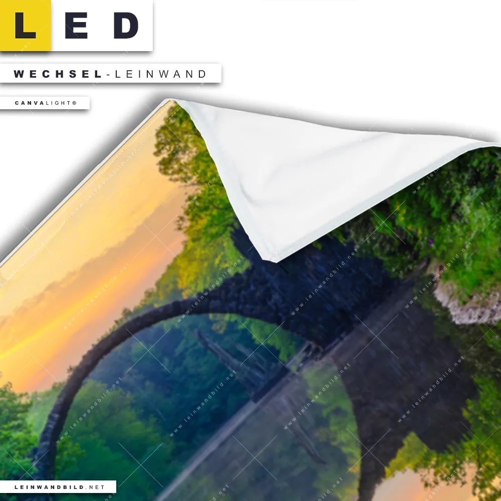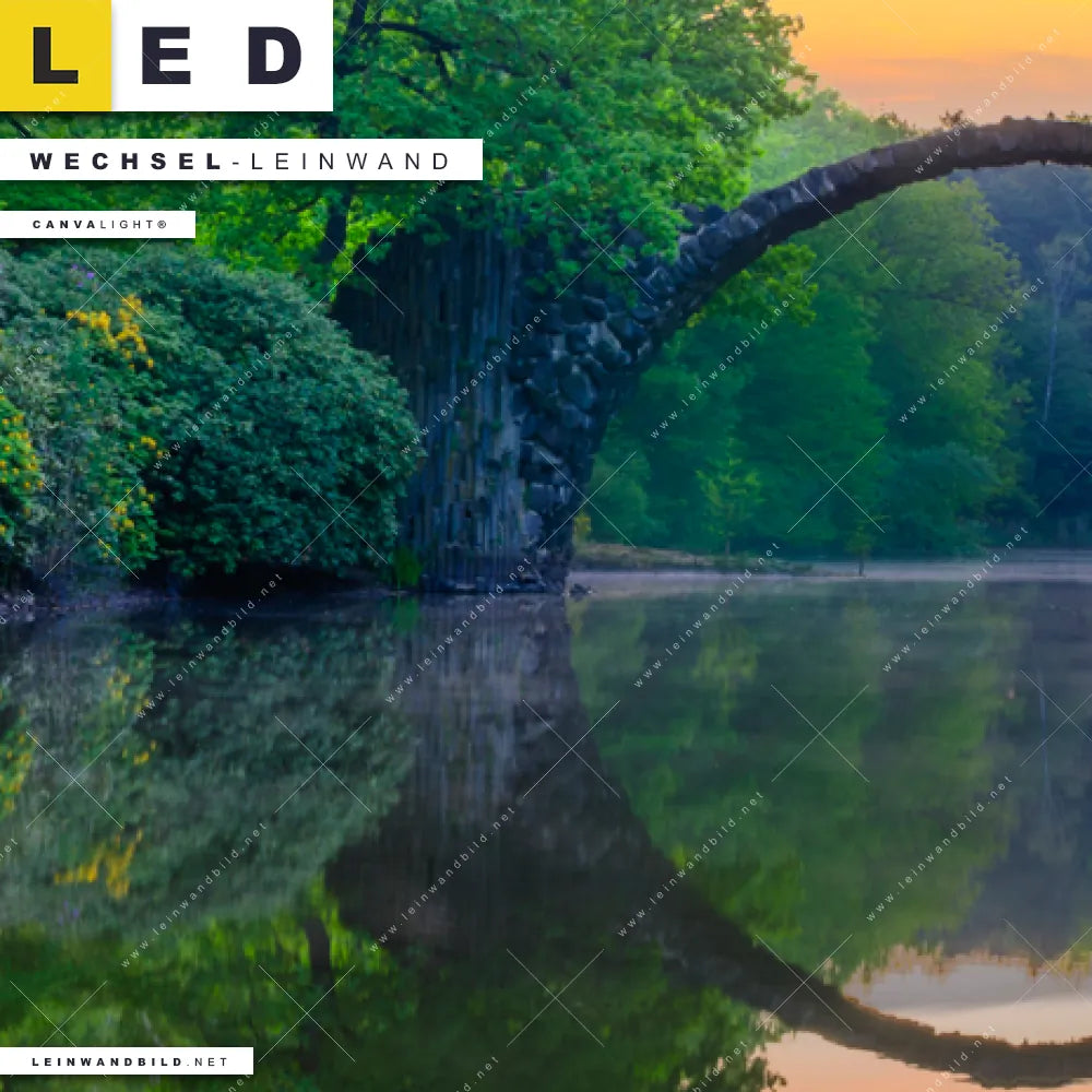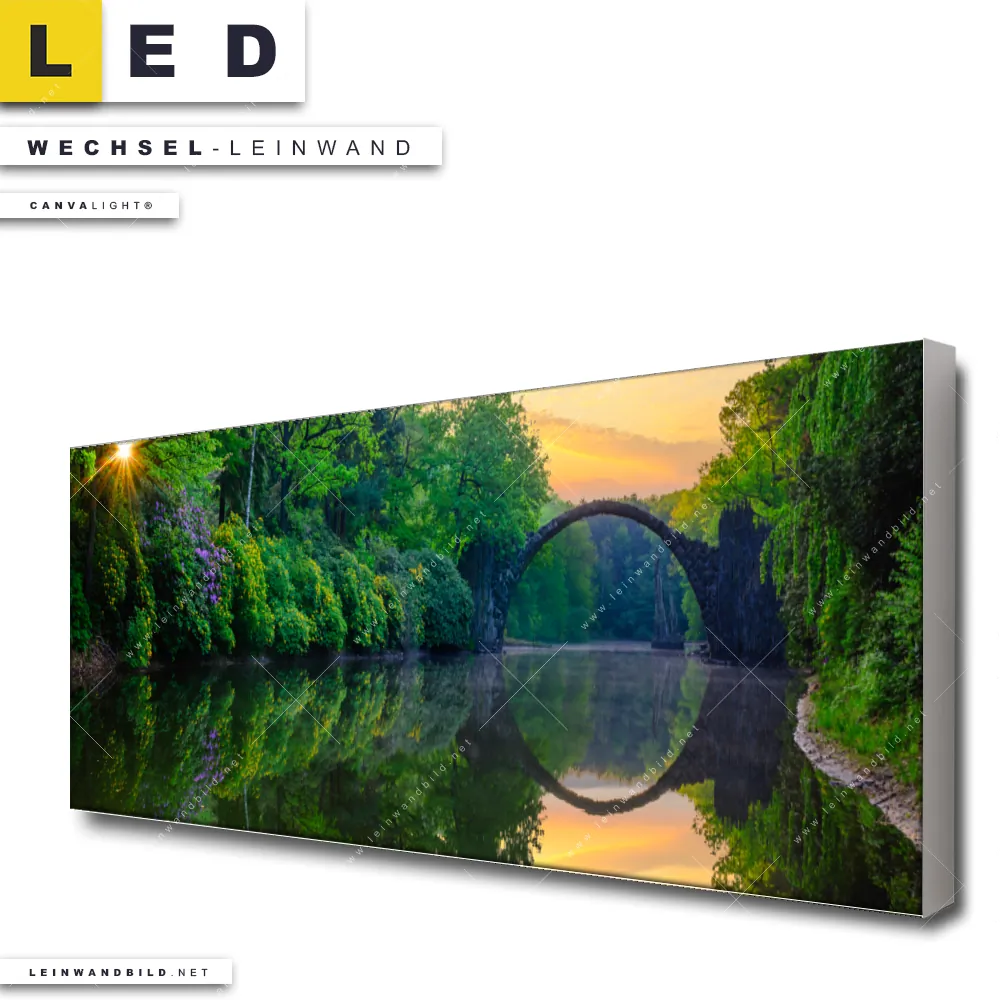 LED Wechsel-Leinwand Canvalight® TEX | See mit alter Brücke aus Stein | Panorama