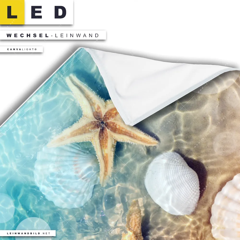 LED Wechsel-Leinwand Canvalight® TEX | Seesterne & Muscheln | Hochformat