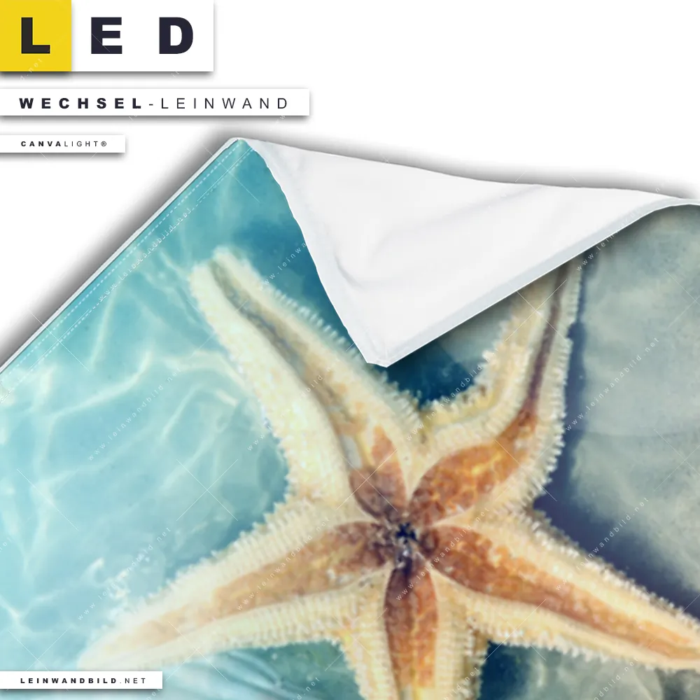 Du konfigurierst Deine individuelle LED Wechsel-Leinwand Canvalight® TEX | Seesterne & Muscheln | Schmal und wir produzieren sie NEU für Dich. Unsere Strand - Meer Austausch-Fotoleinwände für Canvalight® LED Bilder sind KEINE Lagerware. Du bist Dir unsicher, welches Motiv oder Format das richtige für dein individuelles LED Wechselmotiv auf Leinwand ist, dann helfen wir dir gerne weiter und beraten dich!