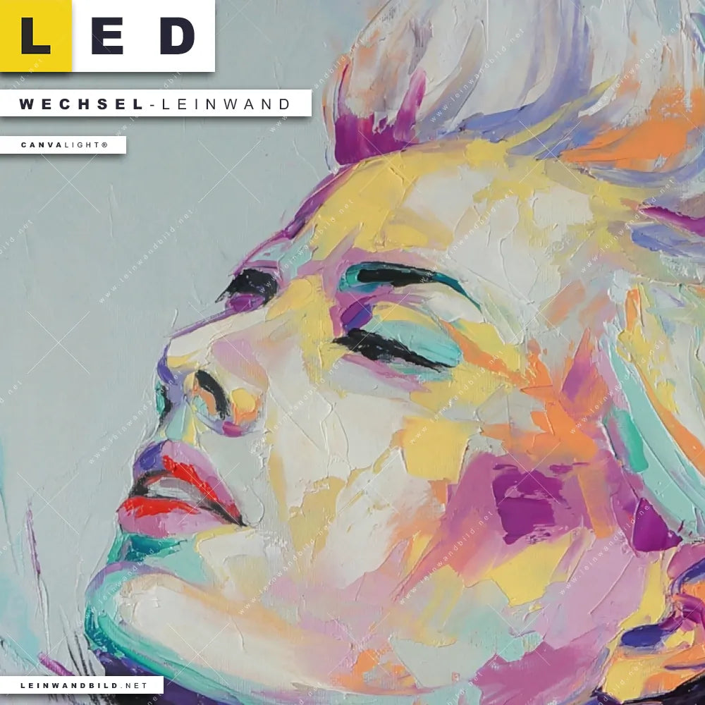 Dann sollte die Wechsel-Leinwand Canvalight® TEX | Sinnliche Schönheit | Quadrat den Weg zu Dir finden. Die Austausch-Leinwand farbenfrohe Schönheit - passend für unsere stufenlos dimmbaren, steckerfertigen Leinwandbilder im Leuchtrahmen mit Fernbedienung und optionaler Farbtemperatursteuerung - fügt sich als Eye-Catcher harmonisch in jedes Wohnzimmer - Schlafzimmer, Bar - Gastronomie, Friseur - Beauty Raumkonzept ein.