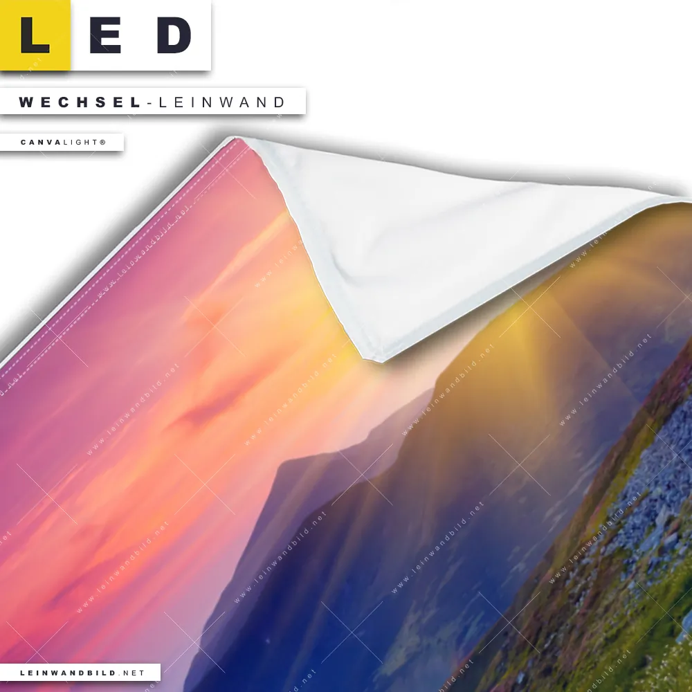 LED Wechsel-Leinwand Canvalight® TEX | Sommerberg im Sonnenuntergang | Hochformat