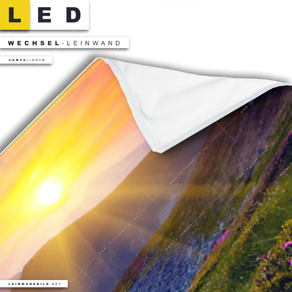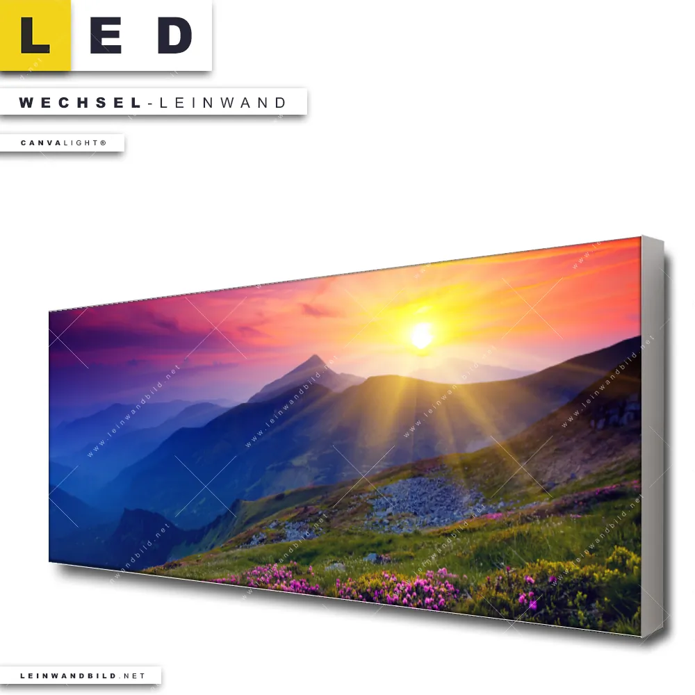 LED Wechsel-Leinwand Canvalight® TEX | Sommerberg im Sonnenuntergang | Panorama
