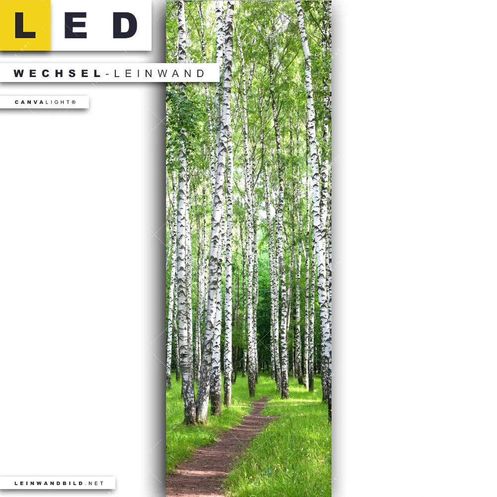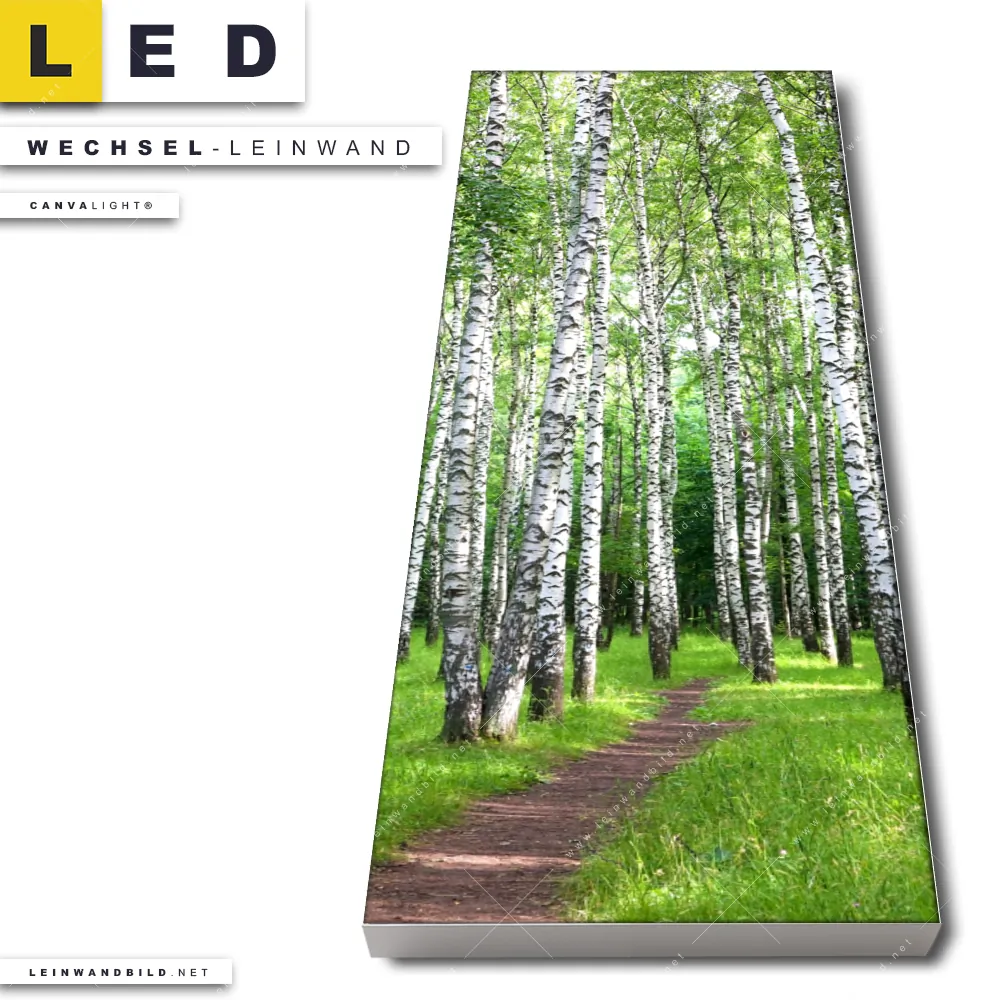 Du konfigurierst Deine individuelle LED Wechsel-Leinwand Canvalight® TEX | Sommerbirken | Schmal und wir produzieren sie NEU für Dich. Unsere Landschaften, Wald - Bäume Austausch-Fotoleinwände für Canvalight® LED Bilder sind KEINE Lagerware. Du bist Dir unsicher, welches Motiv oder Format das richtige für dein individuelles LED Wechselmotiv auf Leinwand ist, dann helfen wir dir gerne weiter und beraten dich!