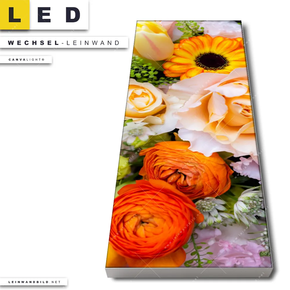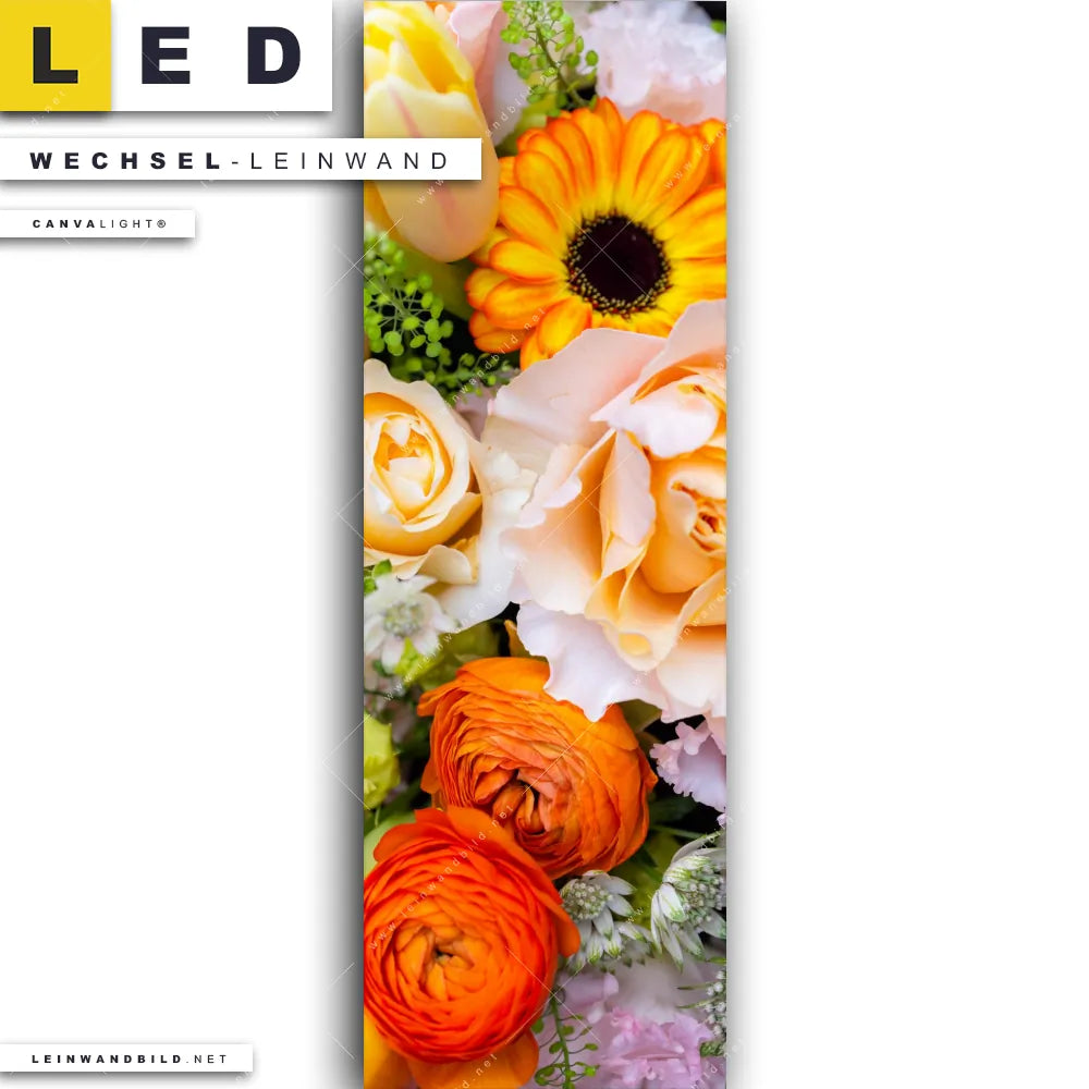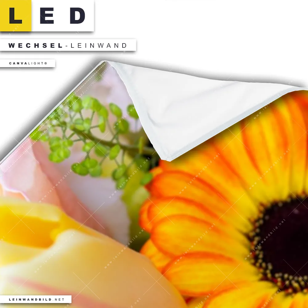 Du konfigurierst Deine individuelle LED Wechsel-Leinwand Canvalight® TEX | Sommerblumen | Schmal und wir produzieren sie NEU für Dich. Unsere Blumen - Botanik Austausch-Fotoleinwände für Canvalight® LED Bilder sind KEINE Lagerware. Du bist Dir unsicher, welches Motiv oder Format das richtige für dein individuelles LED Wechselmotiv auf Leinwand ist, dann helfen wir dir gerne weiter und beraten dich!