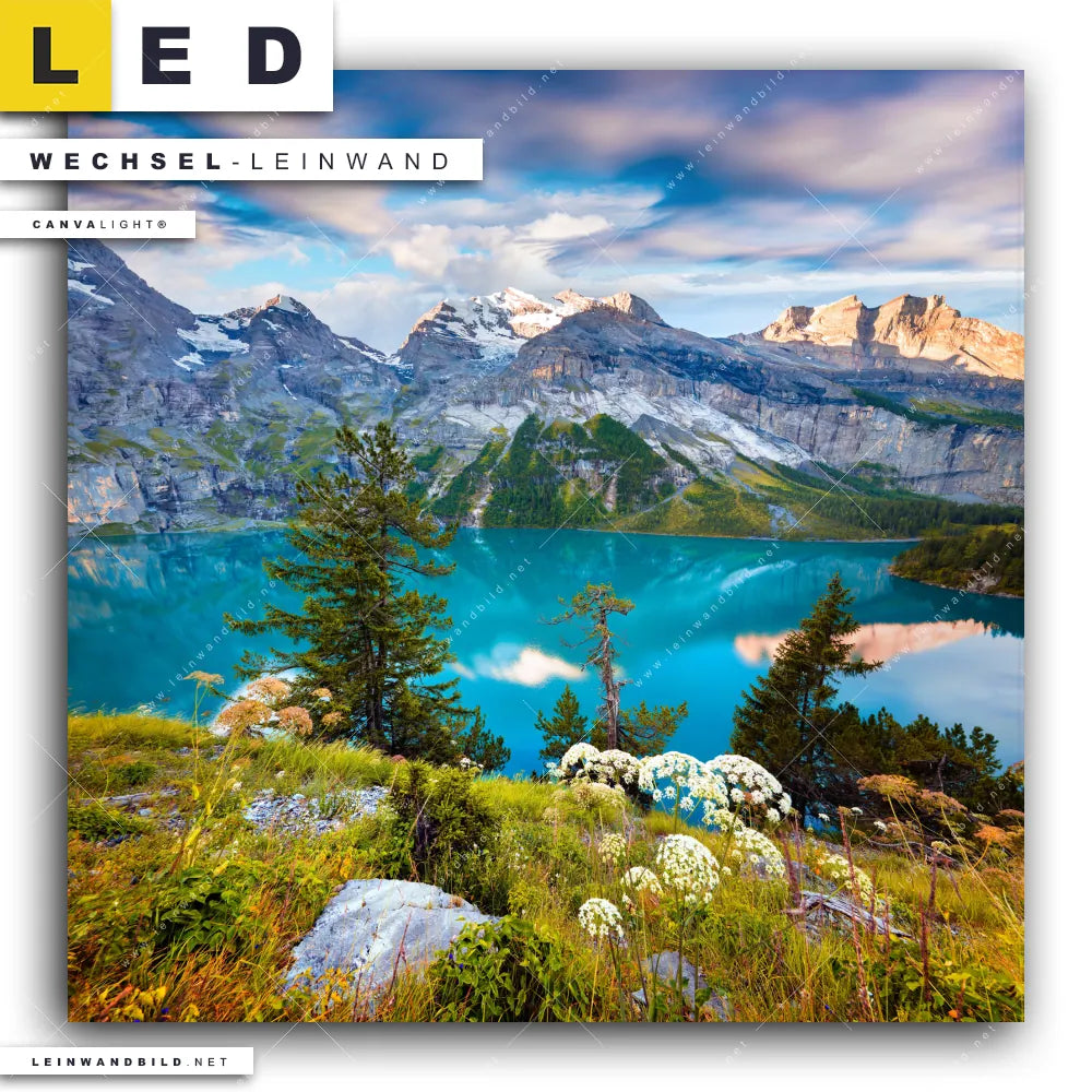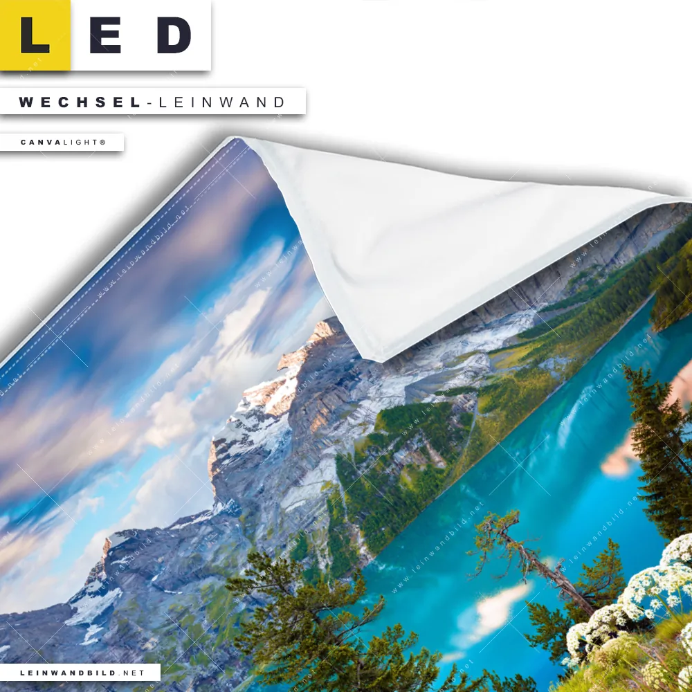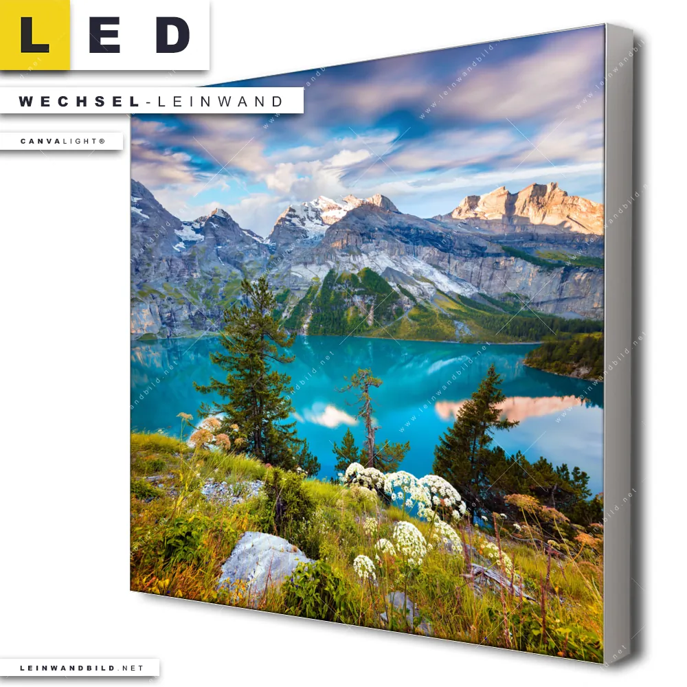 Du bist auf der Suche nach einer Landschaften Wechsel-Leinwand für Dein LED-Leinwandbild im Quadratischen Format? Begriffe wie Urlaub, Reisen, Berge, Bergsee, See, Wasserspiegelung, Sonne, Sonnenstrahlen, Gebirge, Wasser, Wiese, Natur haben Dich auf der Suche nach Deiner Ersatz-Leinwand für dein LED Wandbild mit wechselbarer Leinwand inspiriert? Farben wie Grün, Türkis dürfen auf Deinem neuen Wechselmotiv für Dein XXL Leinwand-LED-Bild nicht fehlen und Leinwände im Natürlich - Realistisch Stil für Leuchtbilder passen perfekt zu Deinem Einrichtungsstil?