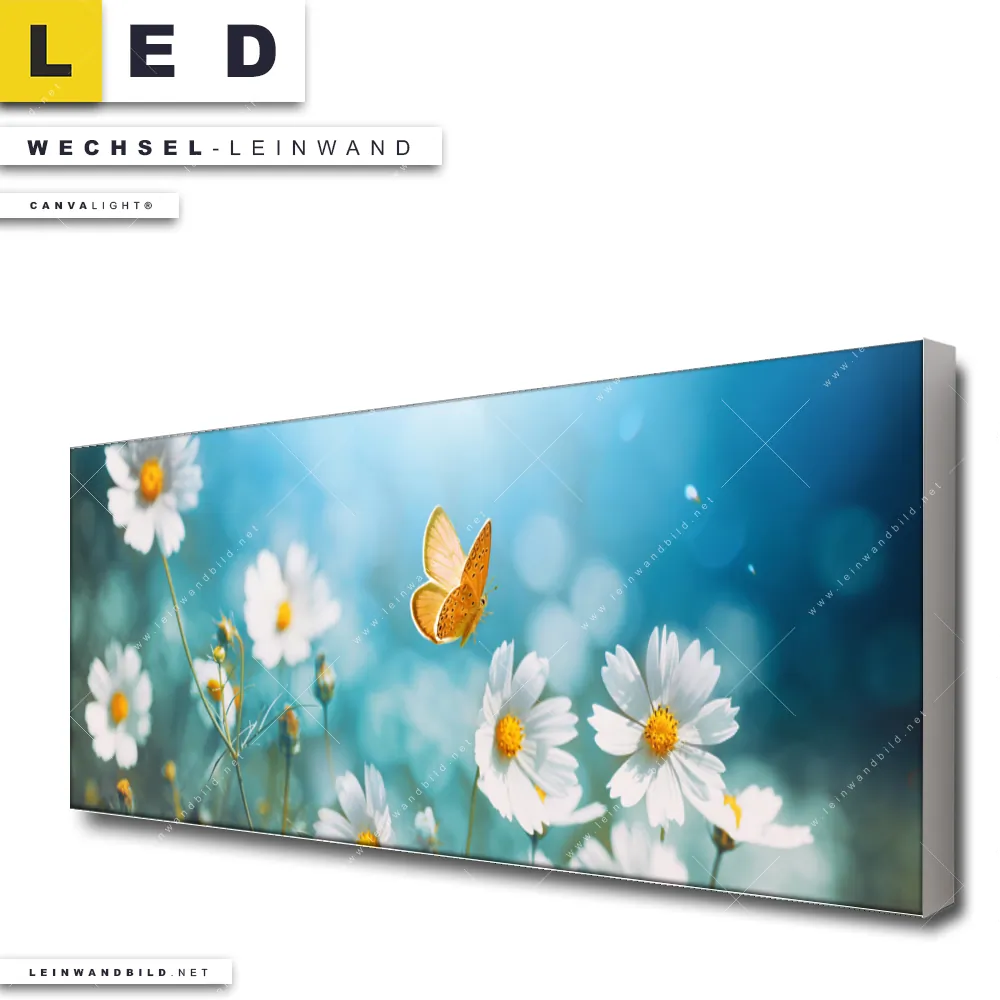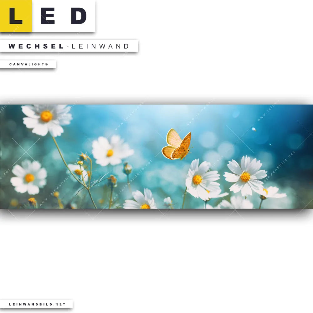 LED Wechsel-Leinwand Canvalight® TEX | Sommerwiese mit Schmetterlingen | Panorama