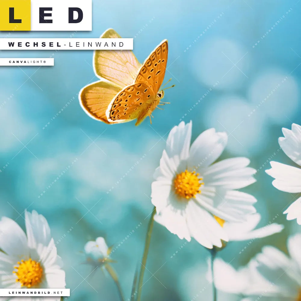 LED Wechsel-Leinwand Canvalight® TEX | Sommerwiese mit Schmetterlingen | Schmal