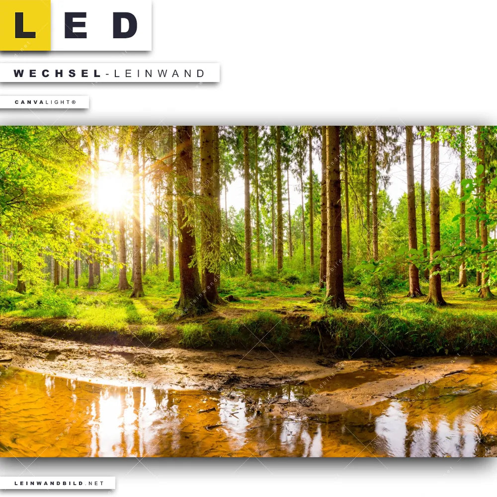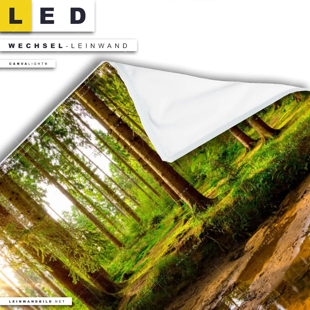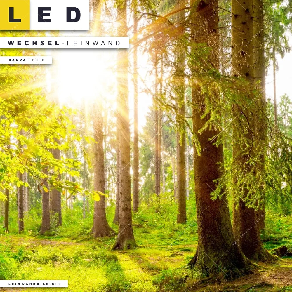 LED Wechsel-Leinwand Canvalight® TEX | Sonne im grünen Wald | Querformat