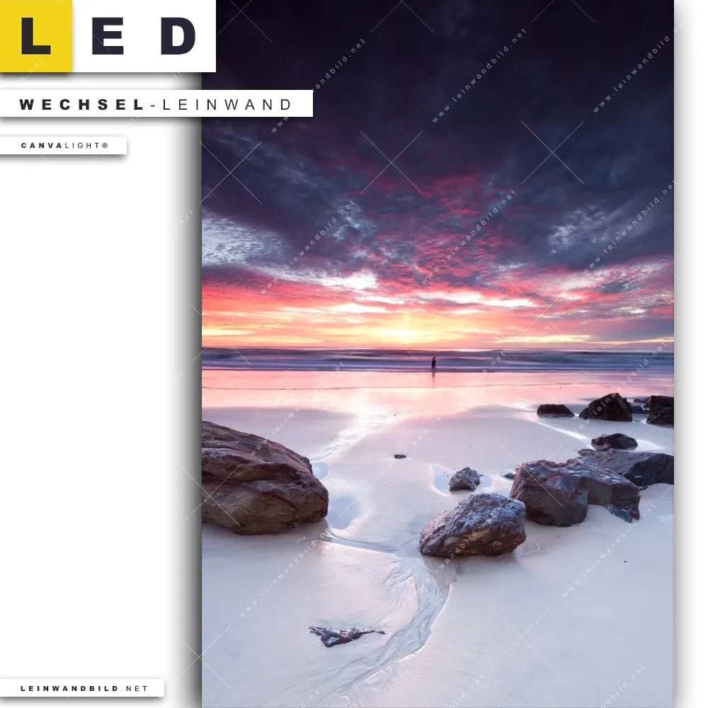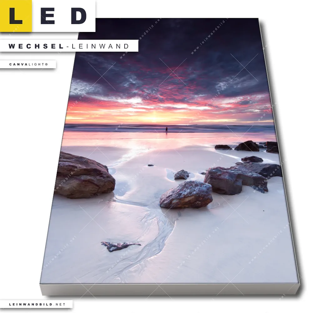Du bist auf der Suche nach einer Landschaften, Strand - Meer Wechsel-Leinwand für Dein LED-Leinwandbild im Hochformat? Begriffe wie Felsen, Sommer, Sonnenuntergang - Sonnenaufgang, Ostsee - Nordsee, Deutschland, Urlaub - Reisen, Steine haben Dich auf der Suche nach Deiner Ersatz-Leinwand für dein LED Wandbild mit wechselbarer Leinwand inspiriert? Farben wie Lila, Orange, Weiss, Blau, Rot dürfen auf Deinem neuen Wechselmotiv für Dein XXL Leinwand-LED-Bild nicht fehlen und Leinwände im Natürlich - Realistisch, Modern Art Stil für Leuchtbilder passen perfekt zu Deinem Einrichtungsstil?