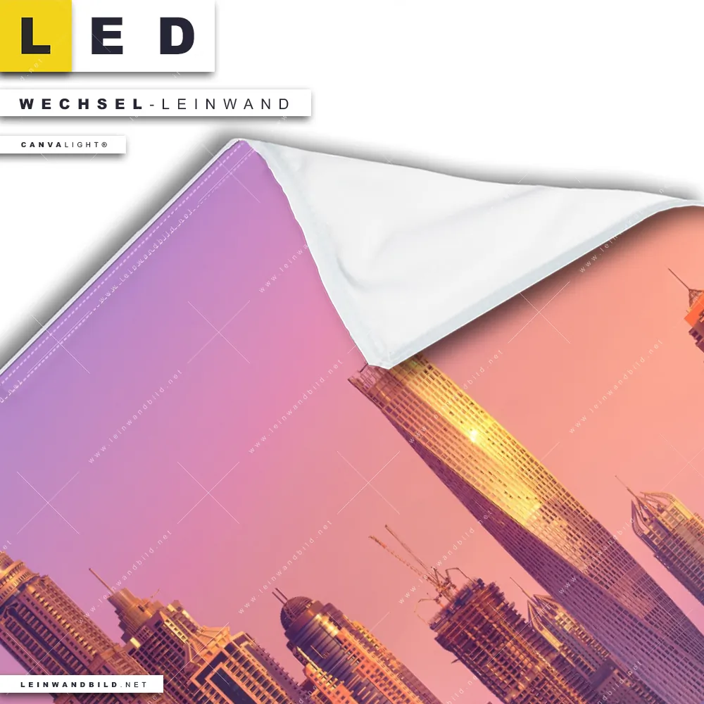 Du bist auf der Suche nach einer Architektur - Gebäude, Städte - Skylines Wechsel-Leinwand für Dein LED-Leinwandbild im Quadratischen Format? Begriffe wie Skyline, Sonnenuntergang, Dubai, Hochhäuser, Wolkenkratzer, Stadt haben Dich auf der Suche nach Deiner Ersatz-Leinwand für dein LED Wandbild mit wechselbarer Leinwand inspiriert? Farben wie Gold, Lila, Pink dürfen auf Deinem neuen Wechselmotiv für Dein XXL Leinwand-LED-Bild nicht fehlen und Leinwände im Natürlich - Realistisch, Modern Art Stil für Leuchtbilder passen perfekt zu Deinem Einrichtungsstil?