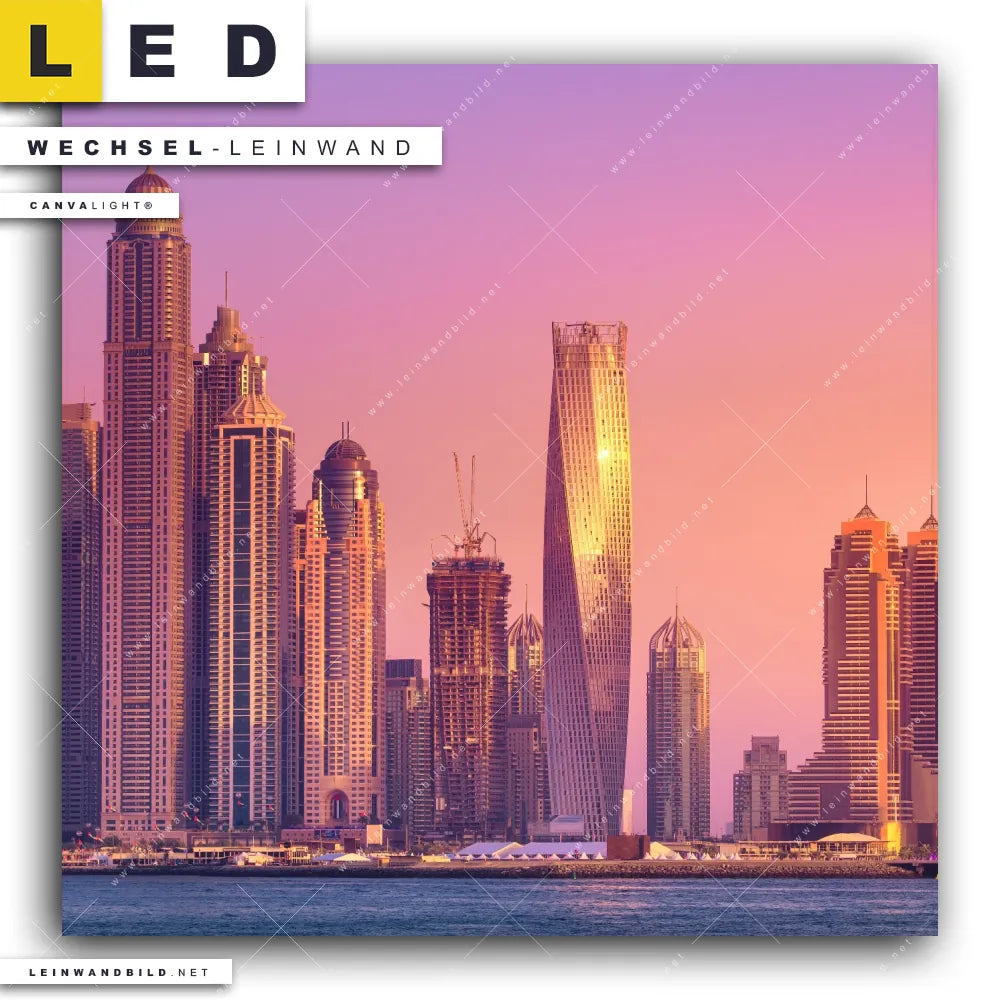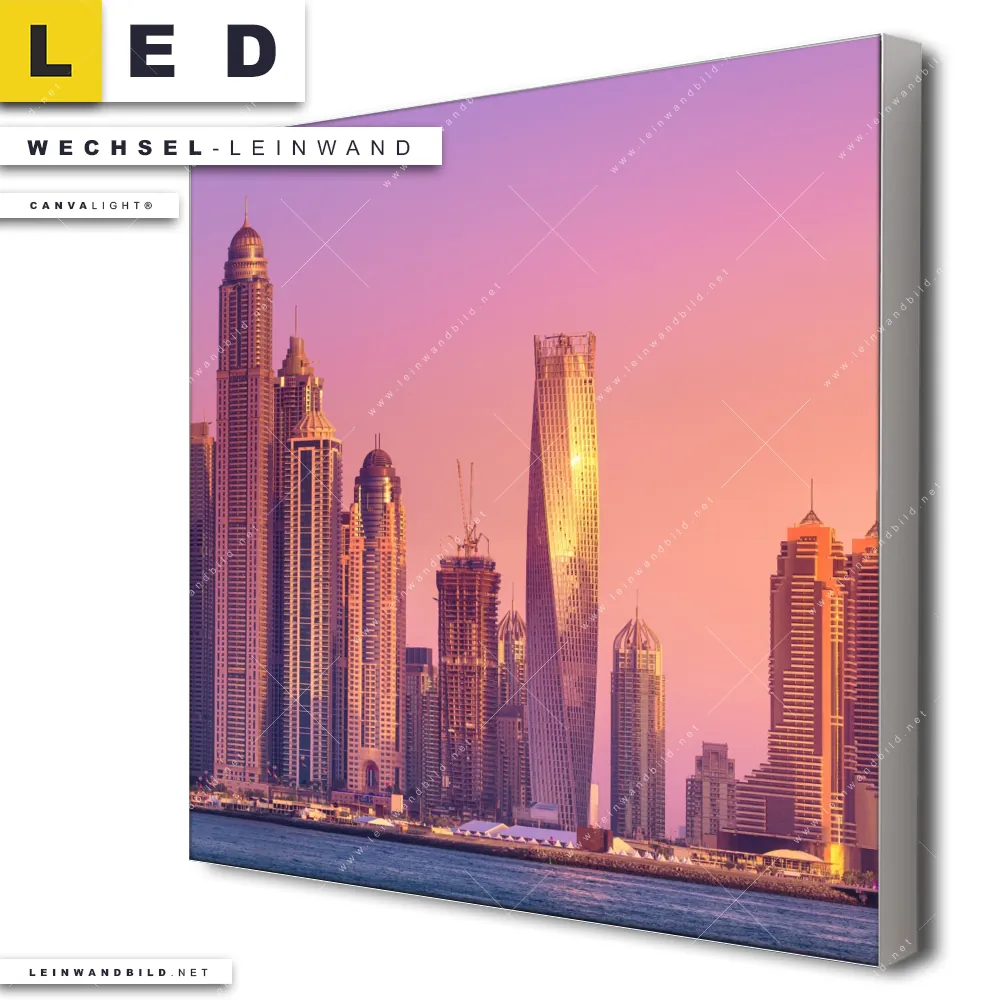 Du konfigurierst Deine individuelle LED Wechsel-Leinwand Canvalight® TEX | Sonnenaufgang in Dubai | Quadrat und wir produzieren sie NEU für Dich. Unsere Architektur - Gebäude, Städte - Skylines Austausch-Fotoleinwände für Canvalight® LED Bilder sind KEINE Lagerware. Du bist Dir unsicher, welches Motiv oder Format das richtige für dein individuelles LED Wechselmotiv auf Leinwand ist, dann helfen wir dir gerne weiter und beraten dich!