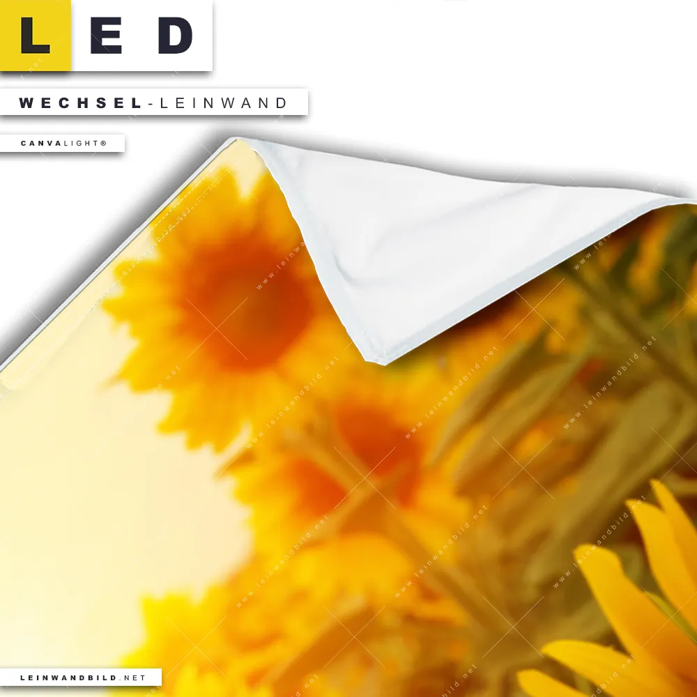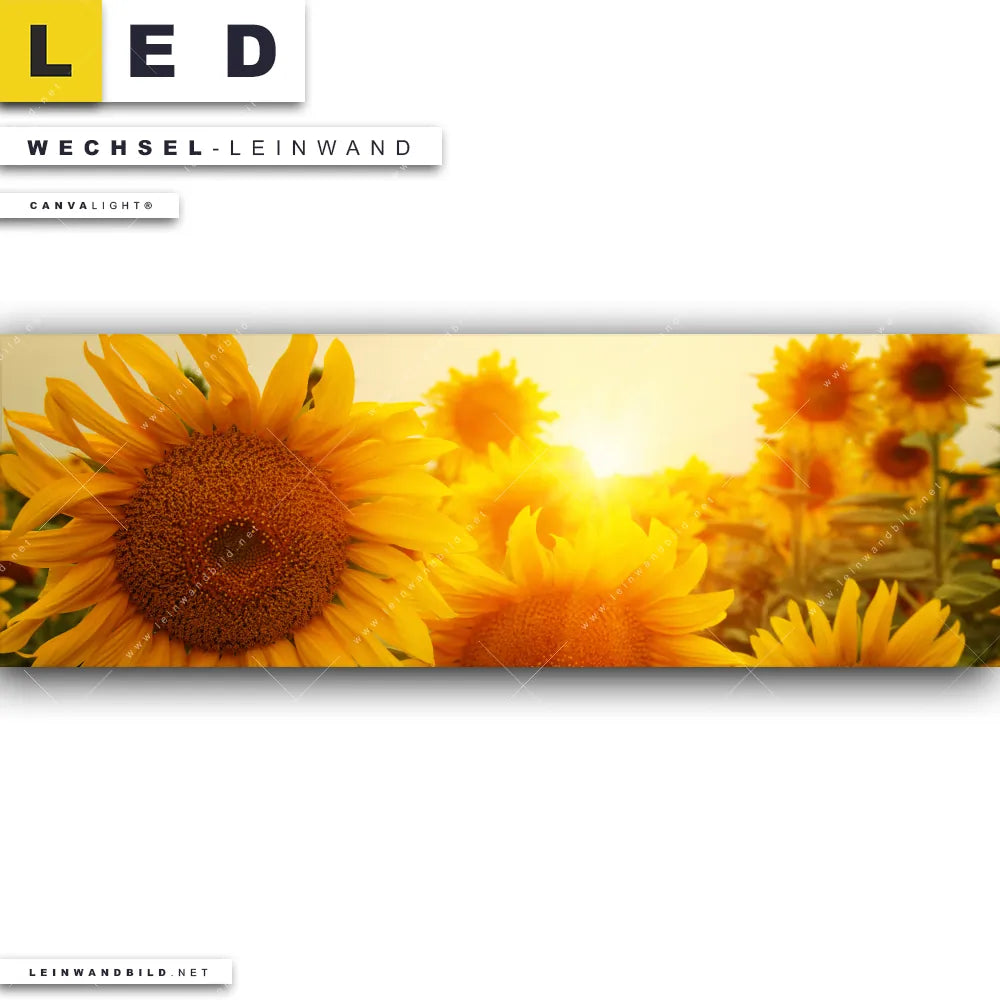 LED Wechsel-Leinwand Canvalight® TEX | Sonnenblumen im Abendlicht | Panorama
