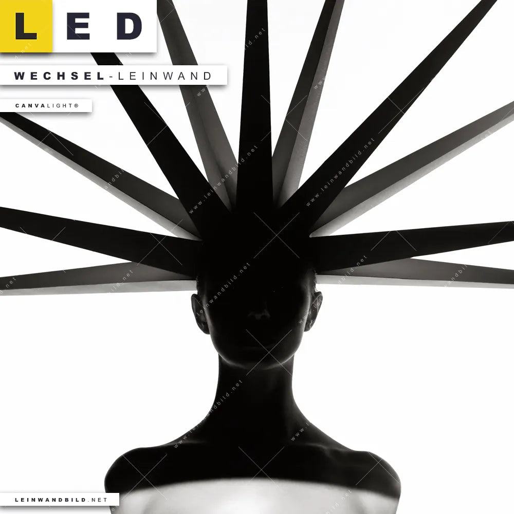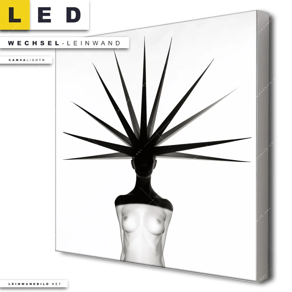 Dann sollte die Wechsel-Leinwand Canvalight® TEX | Sonnengöttin | Quadrat den Weg zu Dir finden. Die Austausch-Leinwand Sonnengöttin erotisch in schwarz-weiß - passend für unsere stufenlos dimmbaren, steckerfertigen Leinwandbilder im Leuchtrahmen mit Fernbedienung und optionaler Farbtemperatursteuerung - fügt sich als Eye-Catcher harmonisch in jedes Bar - Gastronomie, Flur - Eingangsbereich, Wohnzimmer - Schlafzimmer Raumkonzept ein.