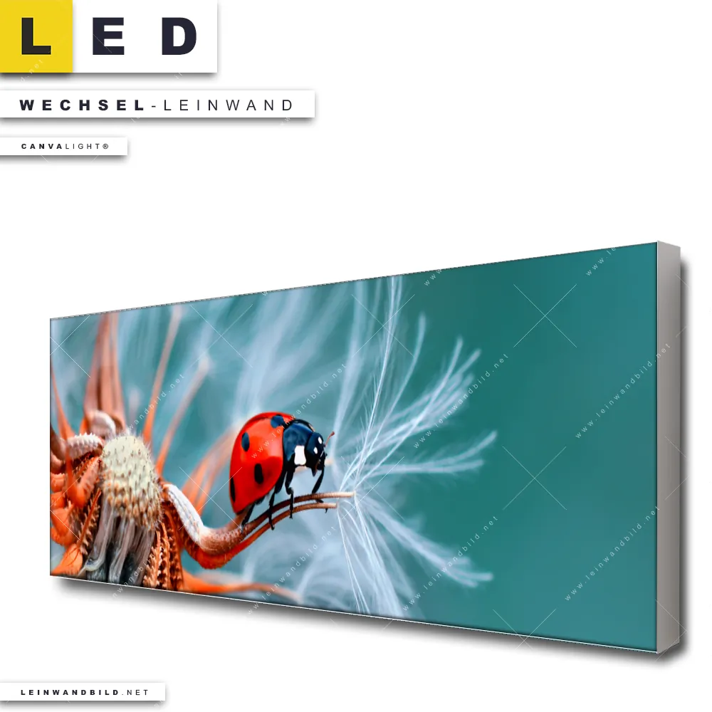 LED Wechsel-Leinwand Canvalight® TEX | Sonnenkäfer auf Pusteblume | Panorama