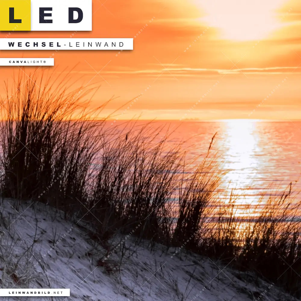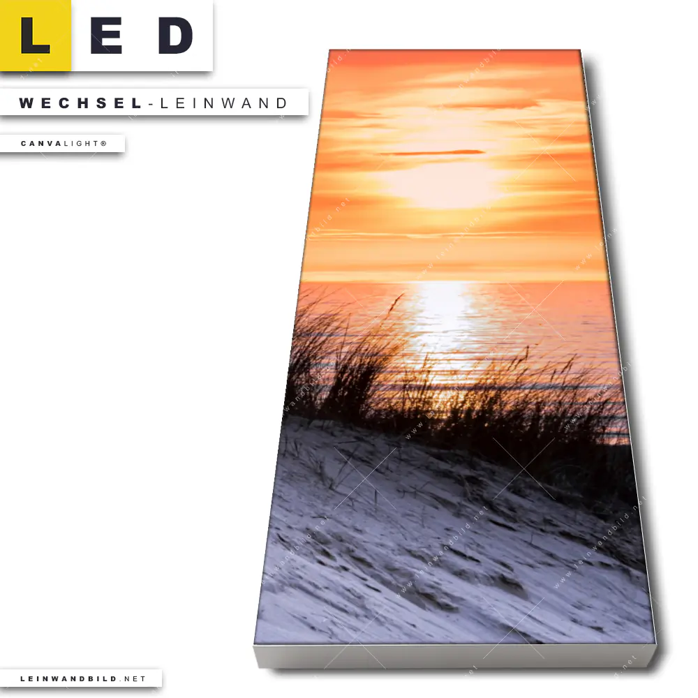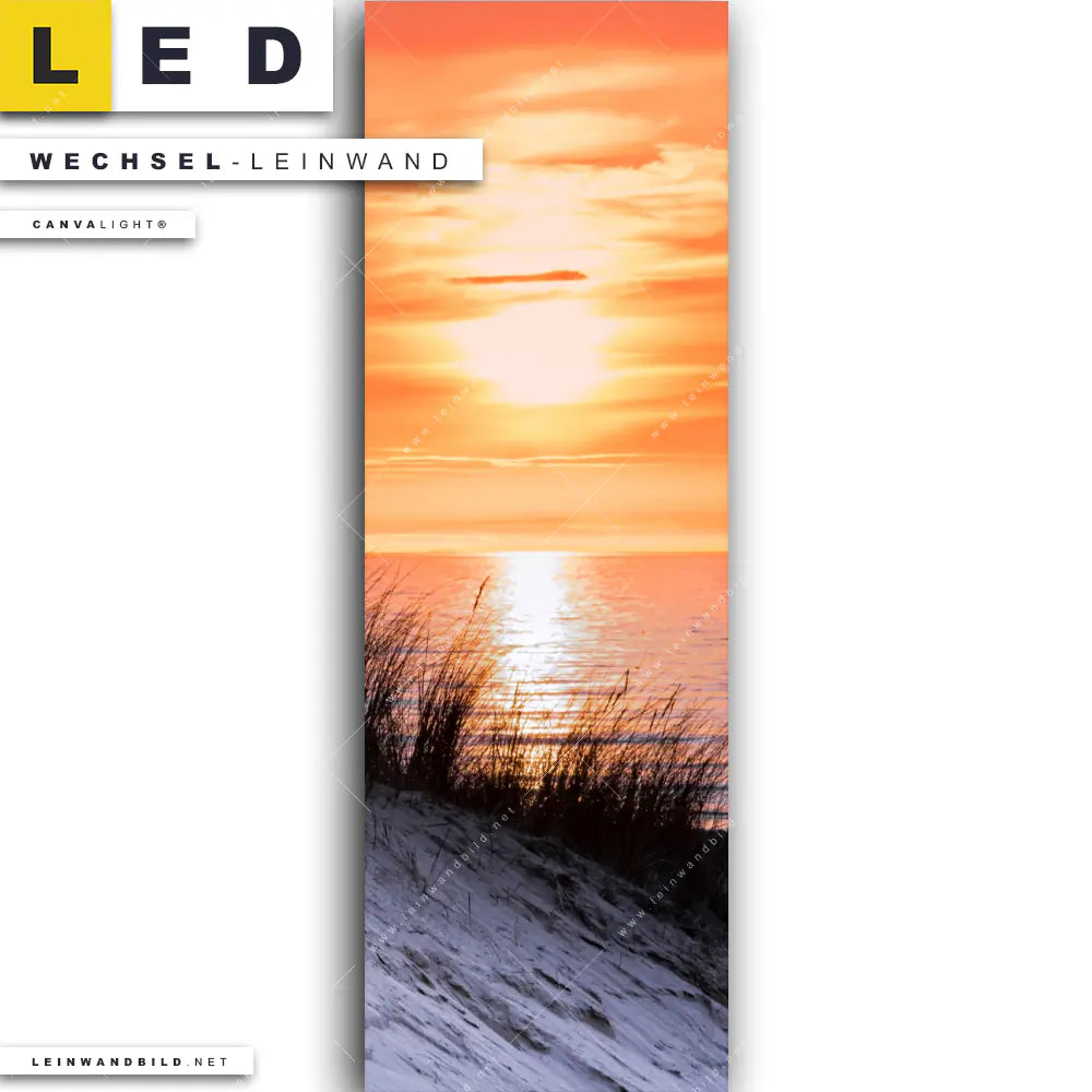 LED Wechsel-Leinwand Canvalight® TEX | Sonnenuntergang mit Düne und Meer | Schmal