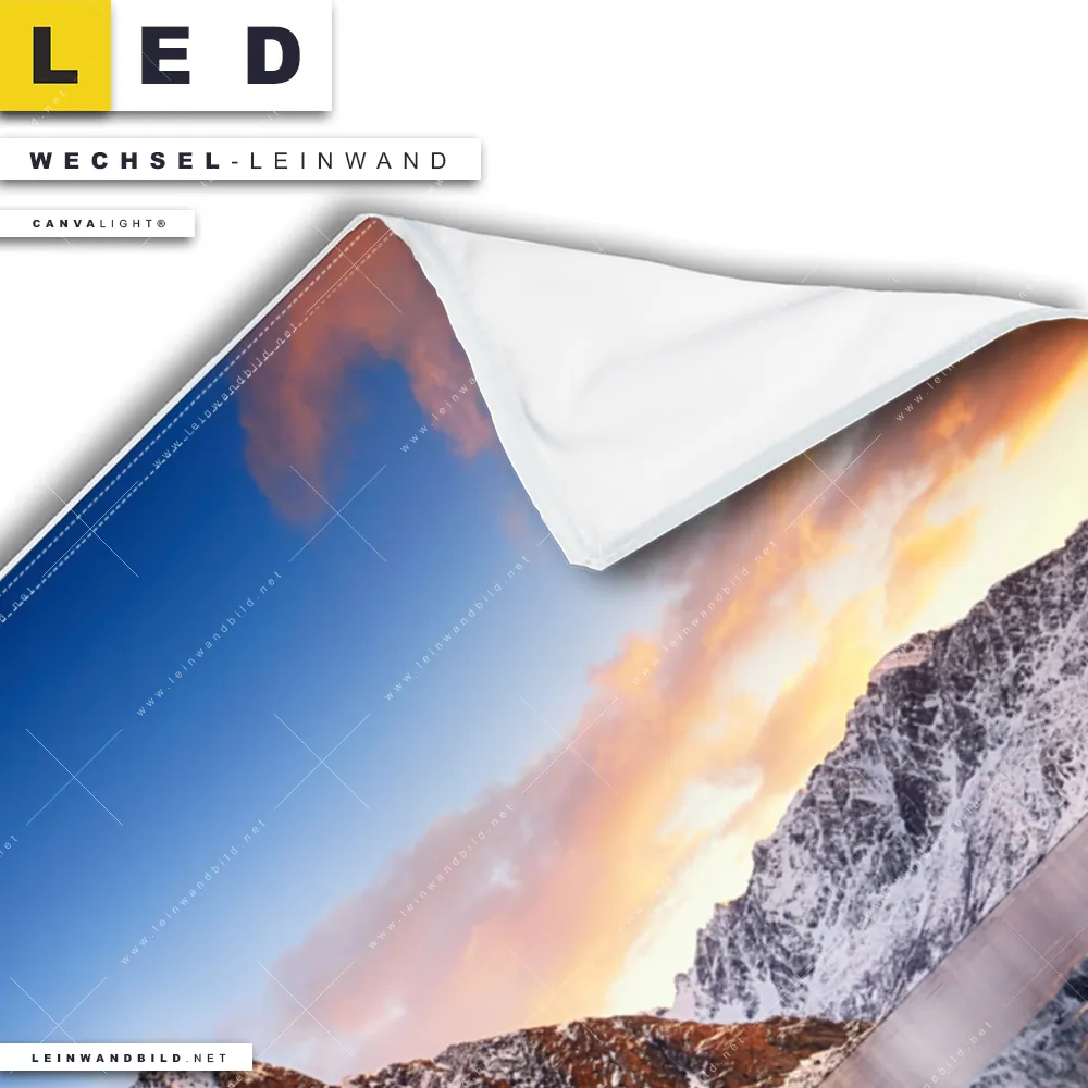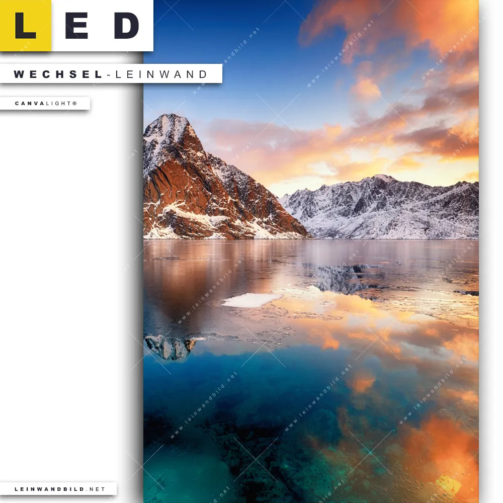 LED Wechsel-Leinwand Canvalight® TEX | Sonnenuntergang Norwegen | Hochformat